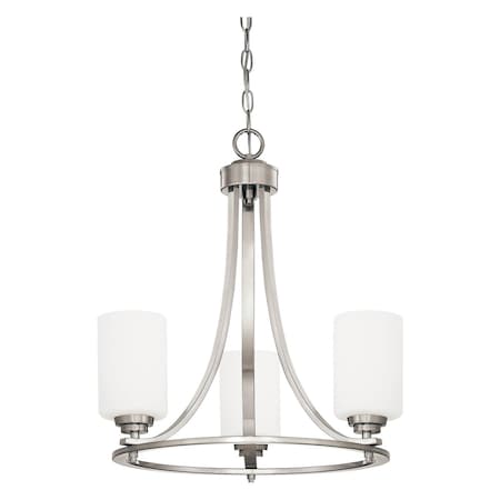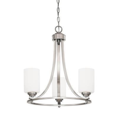 Millennium Lighting 7253-SN Bristo - Three Light Chandelier, Satin Nickel Finish with Etched White Glass