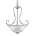 73-SN Finish: Satin Nickel Features: -Fixture Type:Bowl pendant -Style:Contemporary -Shade Material:Glass -Shade Color:White -Finish:Black -Finish:Nickel -Bulb Type:Incandescent -Distressed:No -Number of Lights:3 -Country of Manufacture:China. Specifications: -UL Listed:Yes. Dimensions: -Fixture Height - Top to Bottom:24 -Fixture Width - Side to Side:19