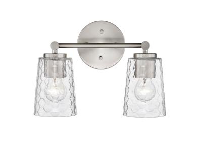 Features: Place this fixture directly above the mirror and sink to add the perfect lighting to your bathroom This fixture must be hardwired Professional installation recommended Constructed from metal Comes with patterned glass shades Requires (2) 100 watt medium (E26) bulbs Capable of being dimmed Can be mounted to provide up or down lighting Rated for installation in damp locations Covered by Millennium Lighting's 1 year limited manufacturer warranty Dimensions: Height: 9-1/2" Width: 13-1/2" Extension: 5-3/4" Backplate Height: 3/4" Backplate Width: 5" Electrical Specifications: Max Wattage: 200 watts Number of Bulbs: 2 Watts Per Bulb: 100 watts Bulb Base: Medium (E26) Voltage: 120 volts Bulbs Included: No