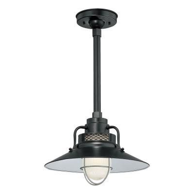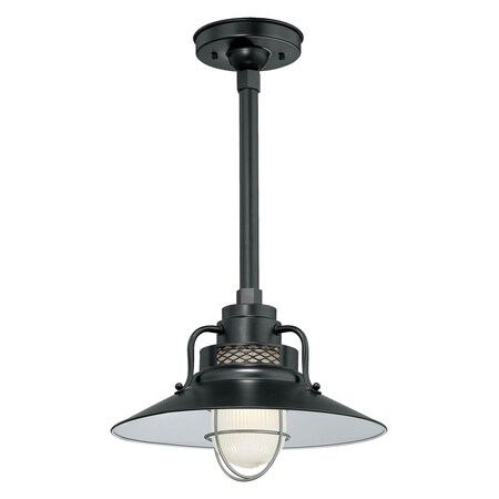 Millennium Lighting RRRS14-SB R Series - 14" One Light Stem Hung Pendant with Railroad Shade, Satin Black Finish