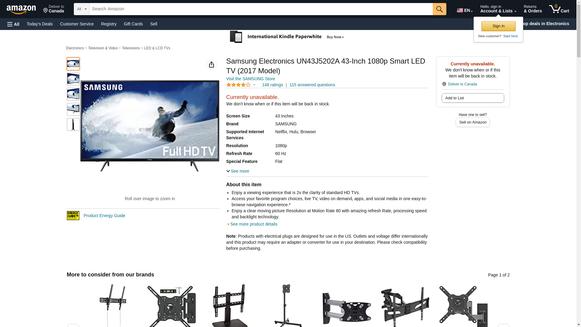 Samsung Consumer Electronics . UN43J5202AFXZA