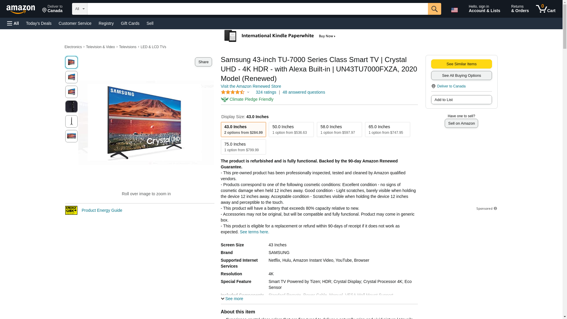 Samsung 43-inch TU-7000 Series Class Smart TV | Crystal UHD - 4K HDR - with Alexa Built-in | UN43TU7000FXZA, 2020 Model (Renewed)
