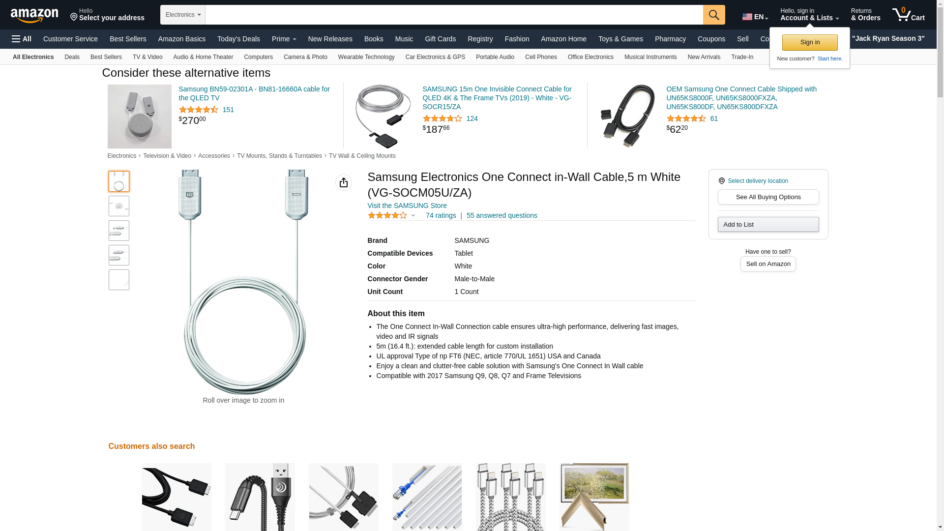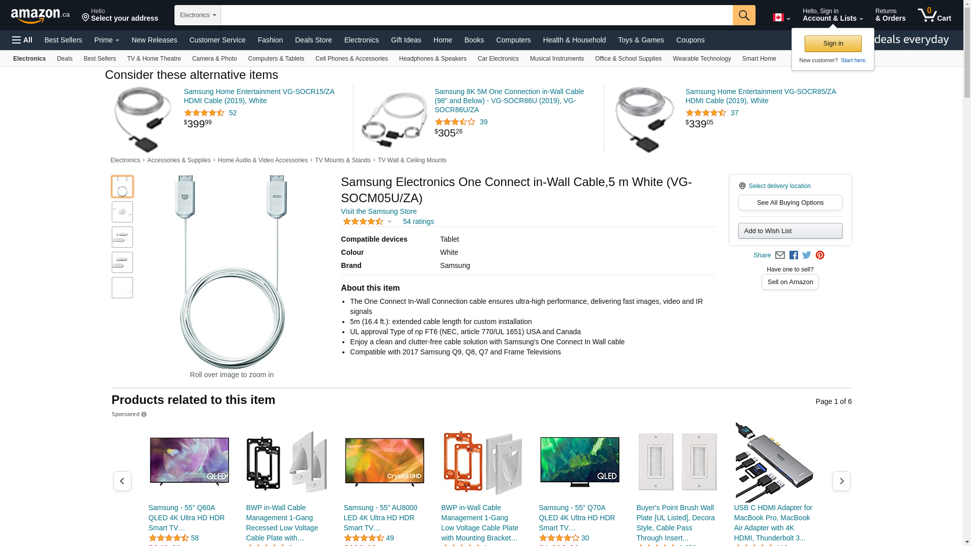 Samsung Electronics One Connect in-Wall Cable,5 m White (VG-SOCM05U/ZA)