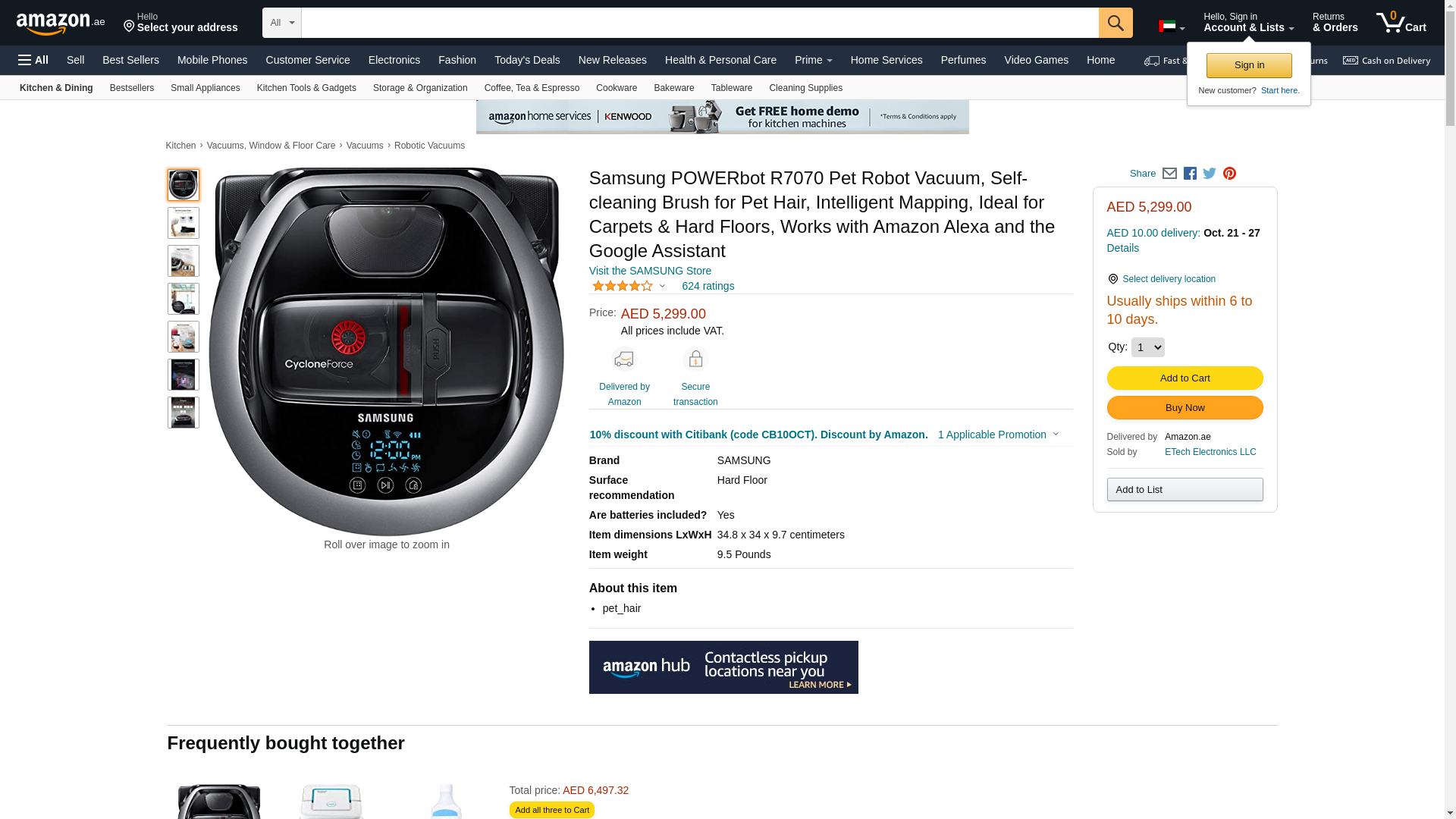 Samsung Electronics R7070 Robot Vacuum Self-cleaning Brush for Pet Hair, Ideal for Carpets & Hard Floors with 5160Pa Strong Performance, Works with Amazon Alexa and the Google Assistant