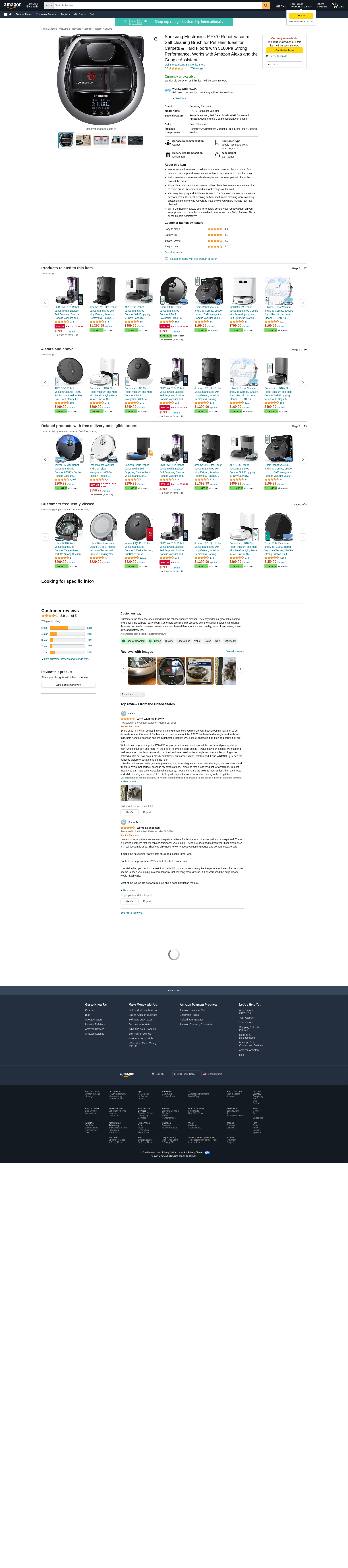 Samsung POWERbot R7070 Pet Robot Vacuum, Compatible with Alexa (Renewed)