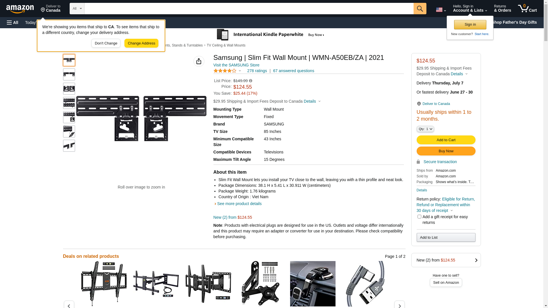 Samsung | Slim Fit Wall Mount | WMN-A50EB/ZA | 2021