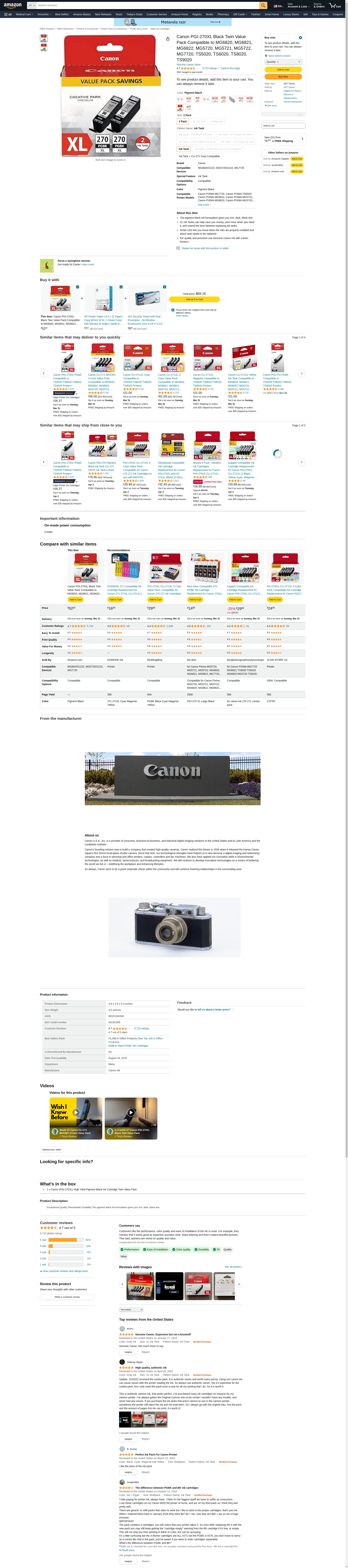 Canon PGI-270XL Black Twin Value Pack Compatible to MG6820, MG6821, MG6822, MG5720, MG5721, MG5722, MG7720, TS5020, TS6020, TS8020, TS9020