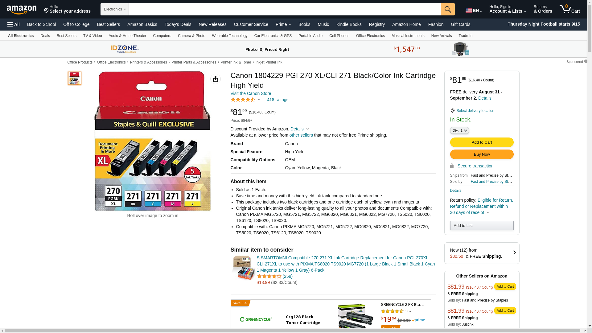 Canon 270 XL/CLI-271 5-Pack Special Edition Ink Cartridges Black/Cyan/Magenta/Yellow 0319C006 - Best Buy