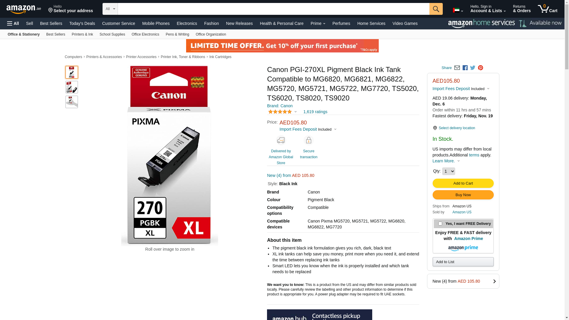 Canon CLI-270 Pigment Black Ink, Compatible to MG7720,MG6820,MG6821,MG6822,MG5720,MG5722,MG5721