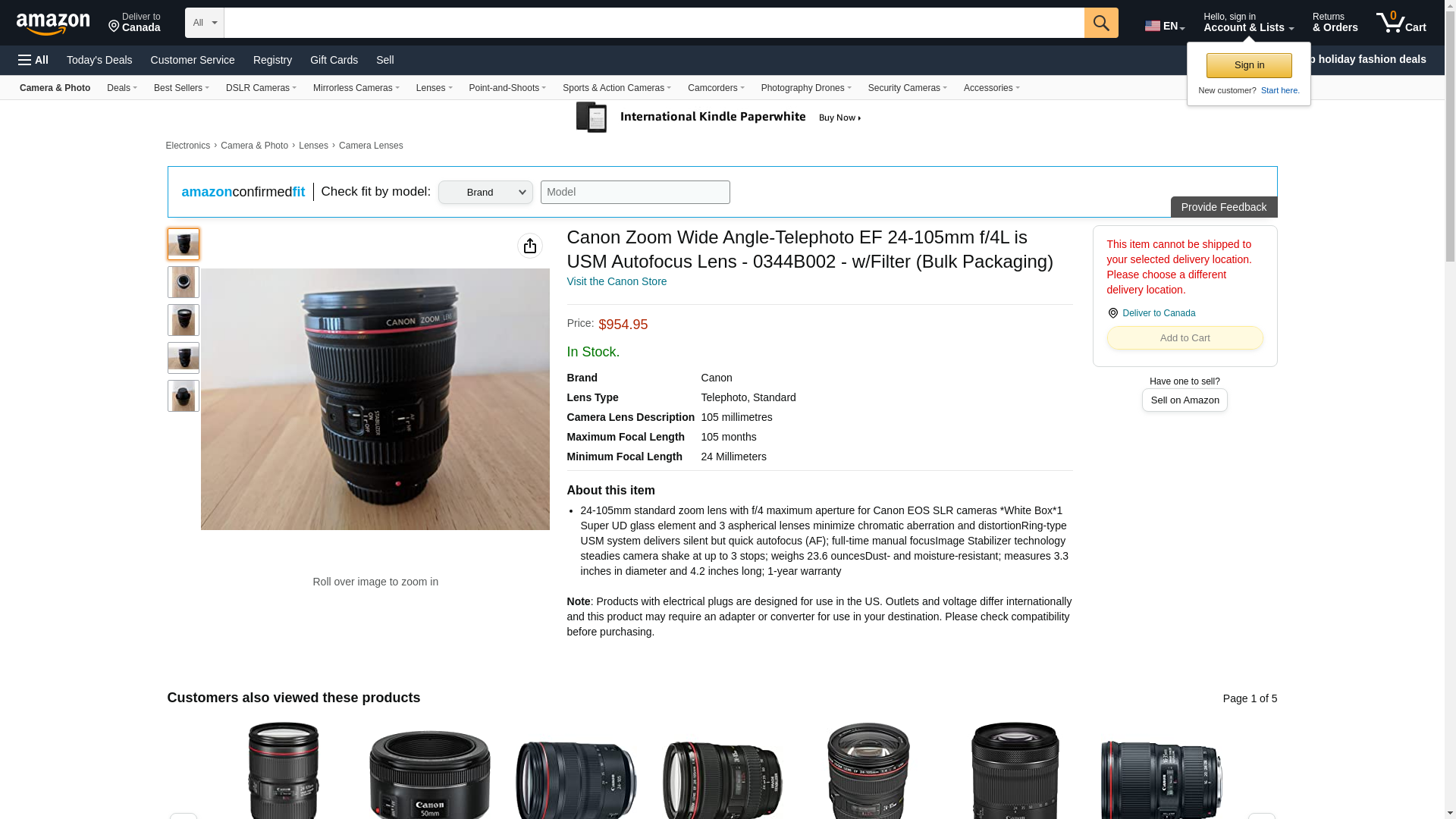 | Feature | 24-105mm standard zoom lens with f/4 maximum aperture for Canon EOS SLR cameras *White Box* |