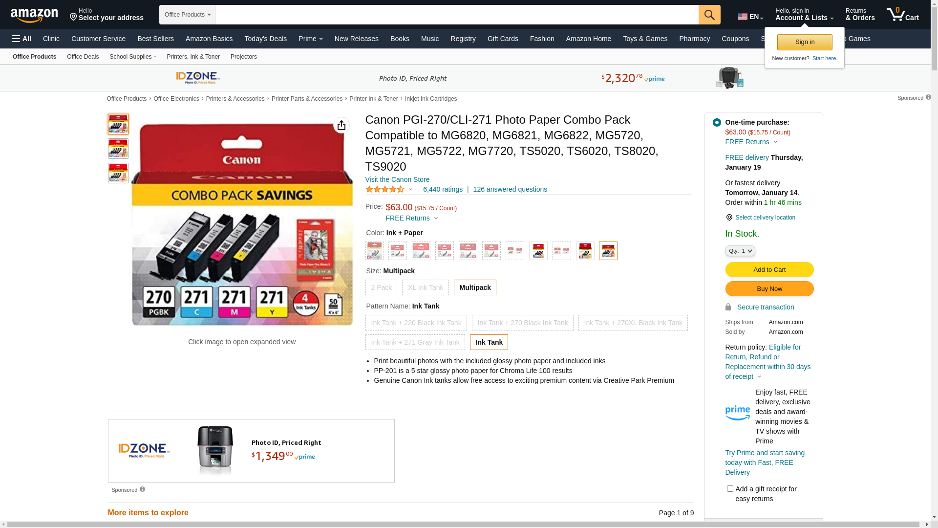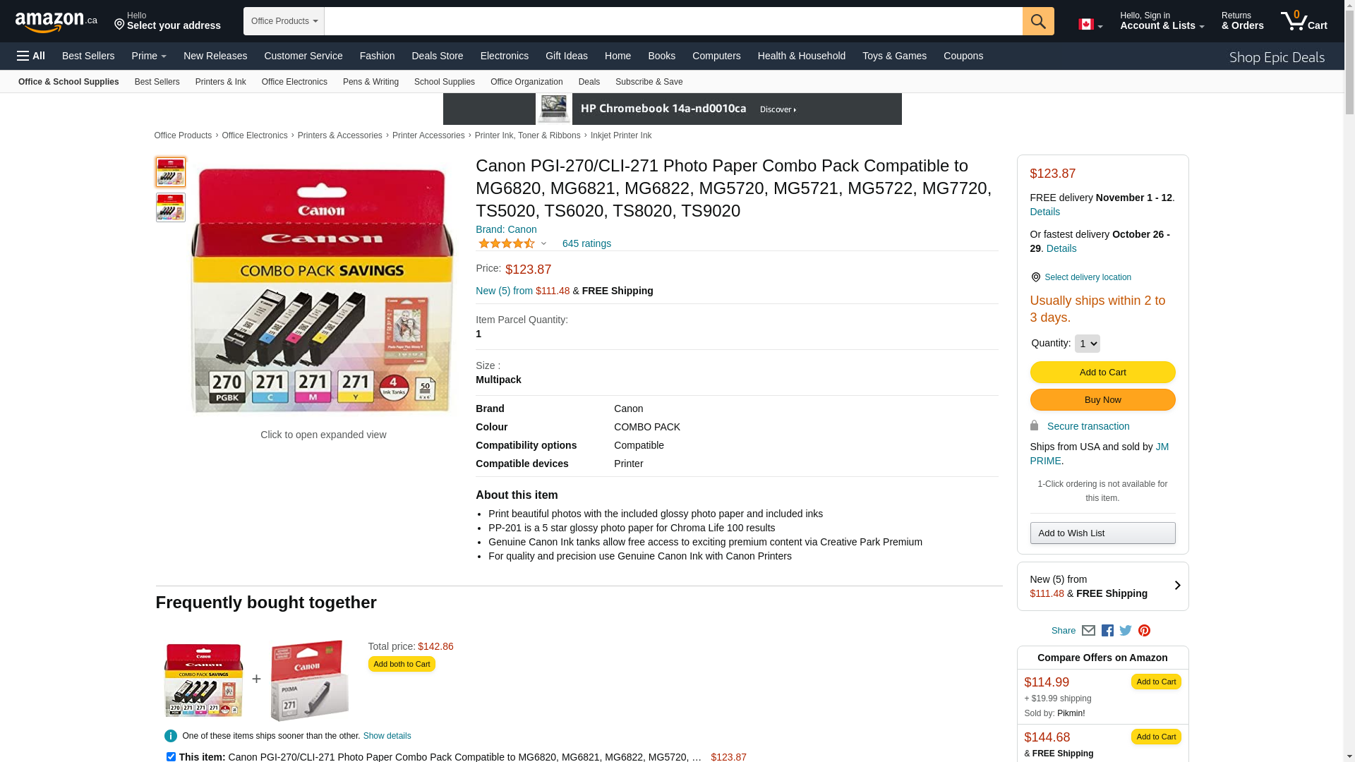 Canon PGI-270/CLI-271 Photo Paper Combo Pack Compatible to MG6820, MG6821, MG6822, MG5720, MG5721, MG5722, MG7720, TS5020, TS6020, TS8020, TS9020