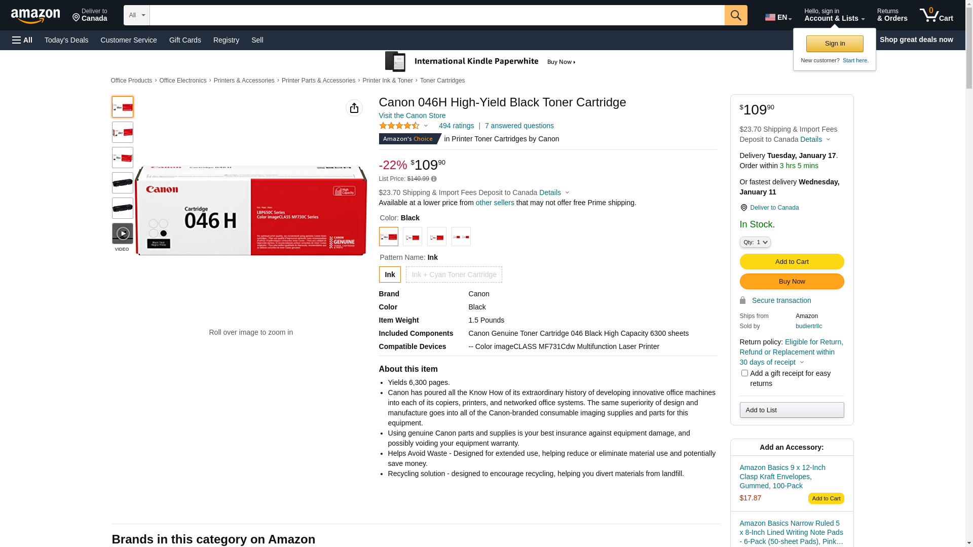 Canon Genuine Toner, Cartridge 046 Black, High Capacity (1254C001), 1 Pack Color imageCLASS MF735Cdw, MF733Cdw, MF731Cdw, LBP654Cdw Laser Printer