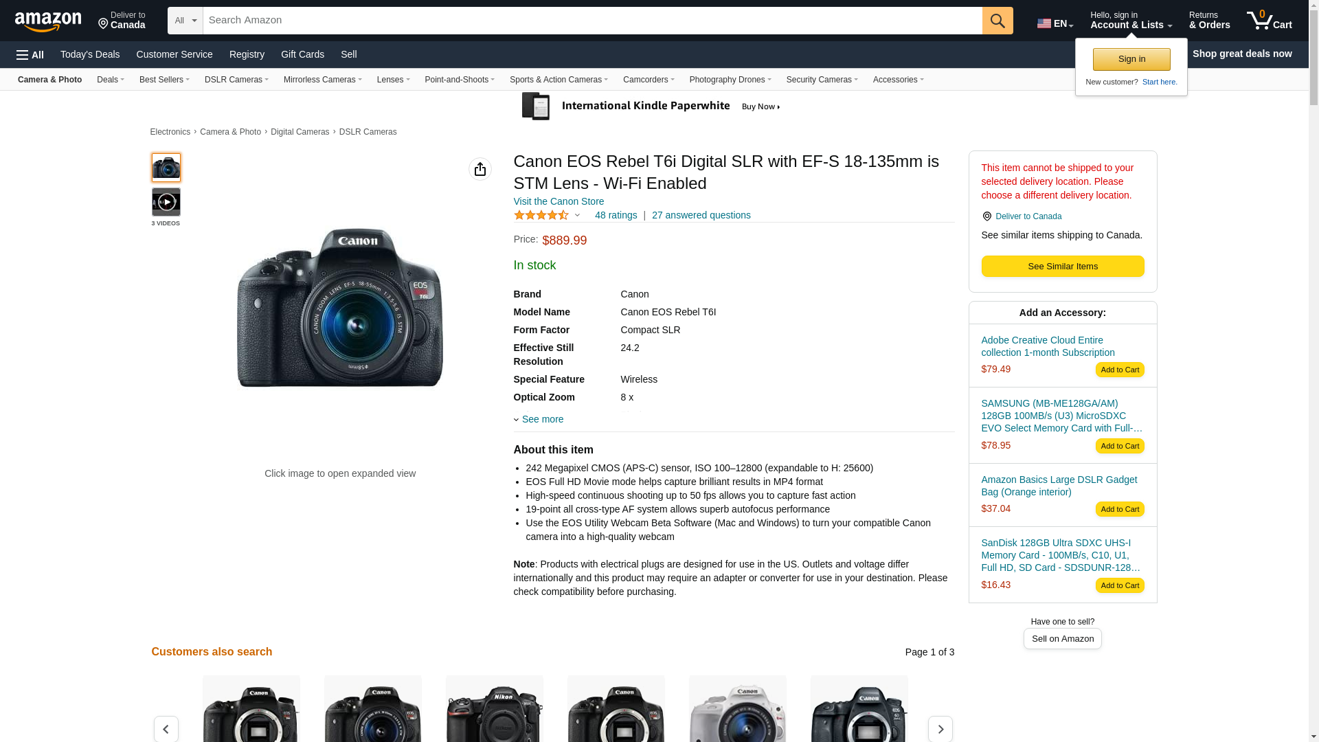 Canon EOS Rebel T6i Digital SLR with EF-S 18-135mm is STM Lens - Wi-Fi Enabled