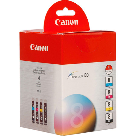 The Genuine Canon Cli-8 Inks Bring Amazing Color And Longevity To Your Photos. Designed With Fine (full Photolithographic Inkjet Nozzle Engineering) Technology, Your Photos Will Realize Added Sharpness, Detail And Quality.with These Individual Ink Tanks You Can Reduce Waste And Save You Money By Only Replacing The Color That Runs Out. This Exclusive Four Pack Contains One Cli-8 Black, One Cli-8 Cyan, One Cli-8 Magenta And Cli-8 Yellow And Is Compatible With Select Pixma Ip And Mp Products As Well As The Pro9000 Series. Remember, When Printing With Genuine Canon Inks And Photo Papers The Chromalife100 System Gives You Beautiful, Long-lasting Photos.