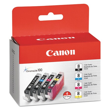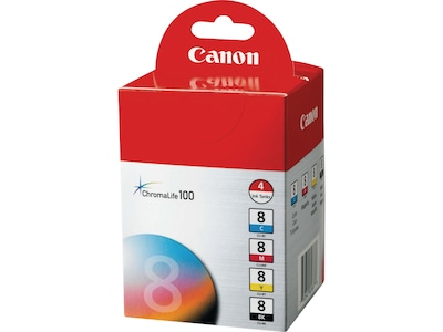 Canon CLI-8 ChromaLife 100 Black/Color Ink Cartridges (0620B010), Pack Of 4