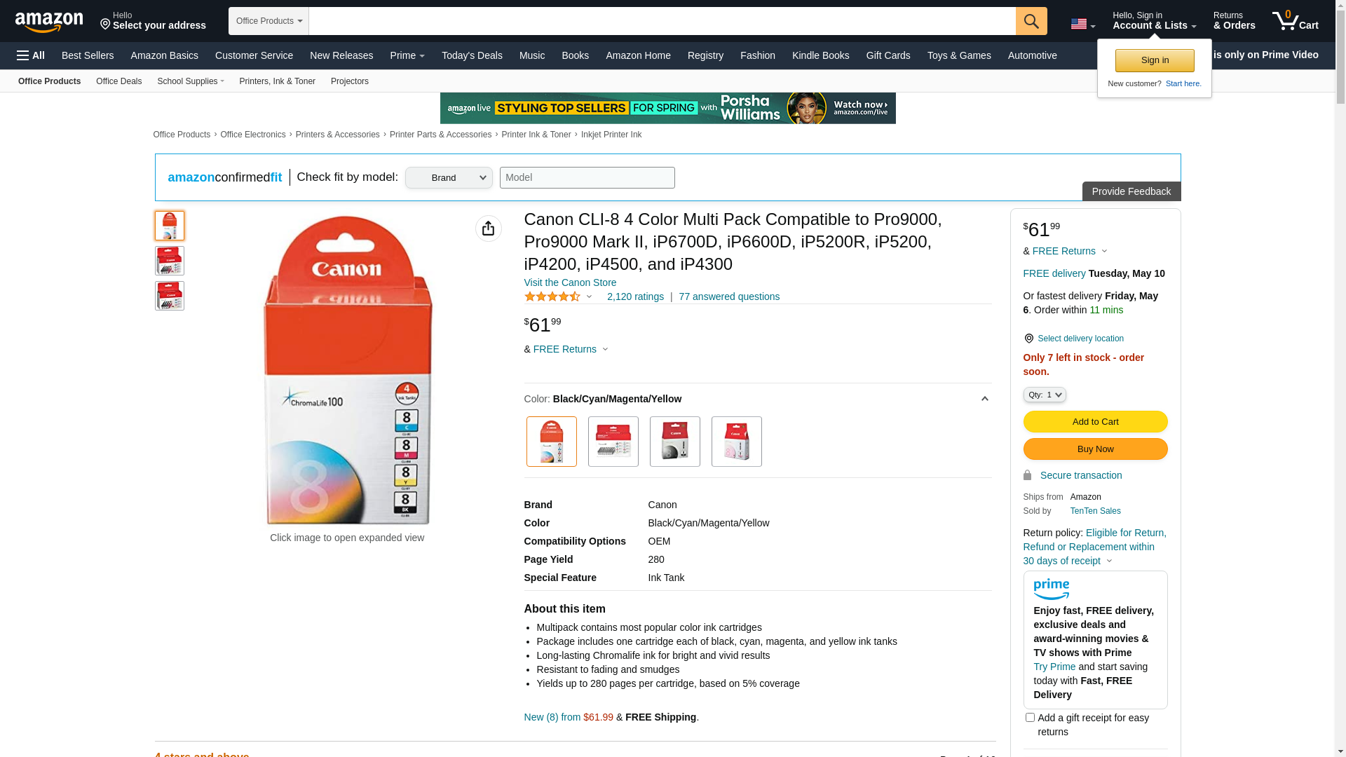 | Feature | Consumable Type: Ink Cartridge| Printer Technology: Ink-jet| Output Color: Cyan; Black; Yellow; Magenta |