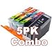 5-Pack Compatible Inkjet Cartridge Combo Without Chip for Canon Pixma iP4200, iP5200 & MP500, MP800