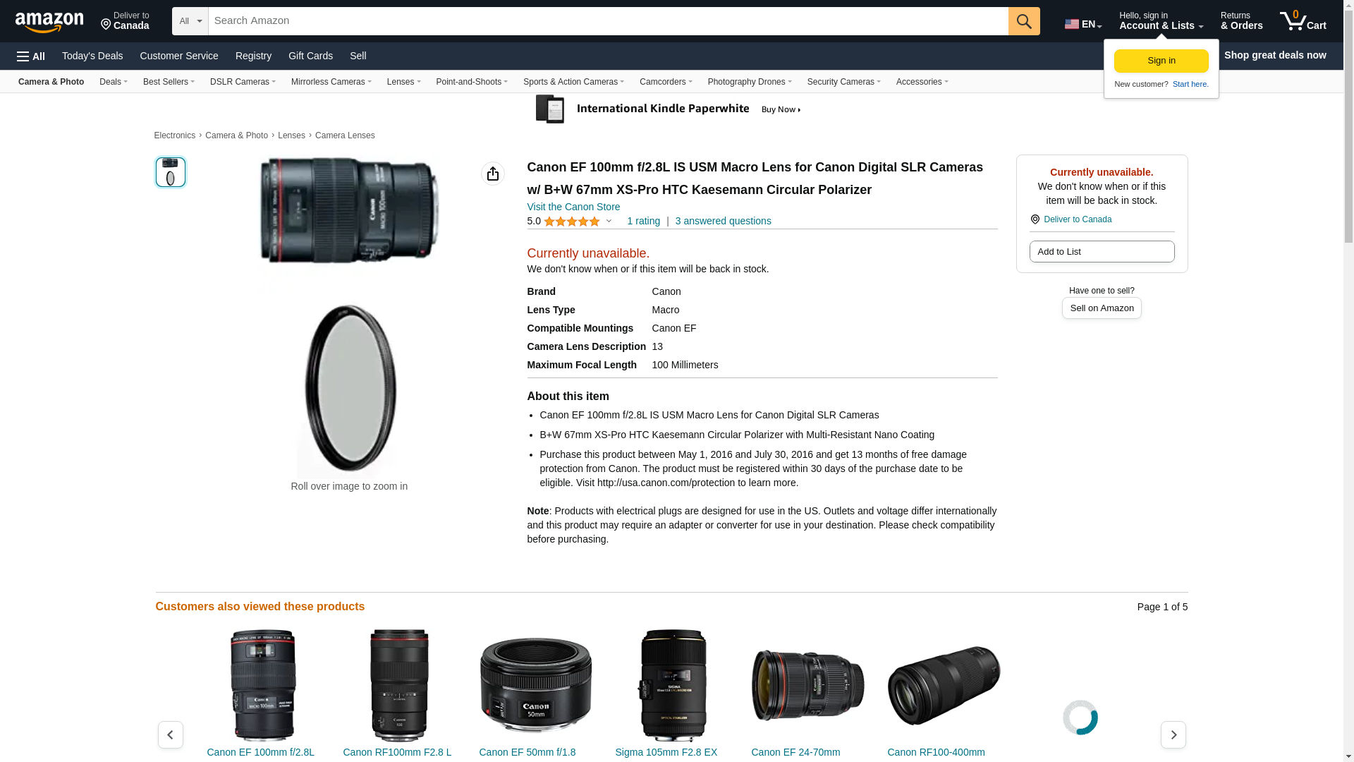 - Canon EF 100mm f/2.8L IS USM Macro Lens for Canon Digital SLR Cameras