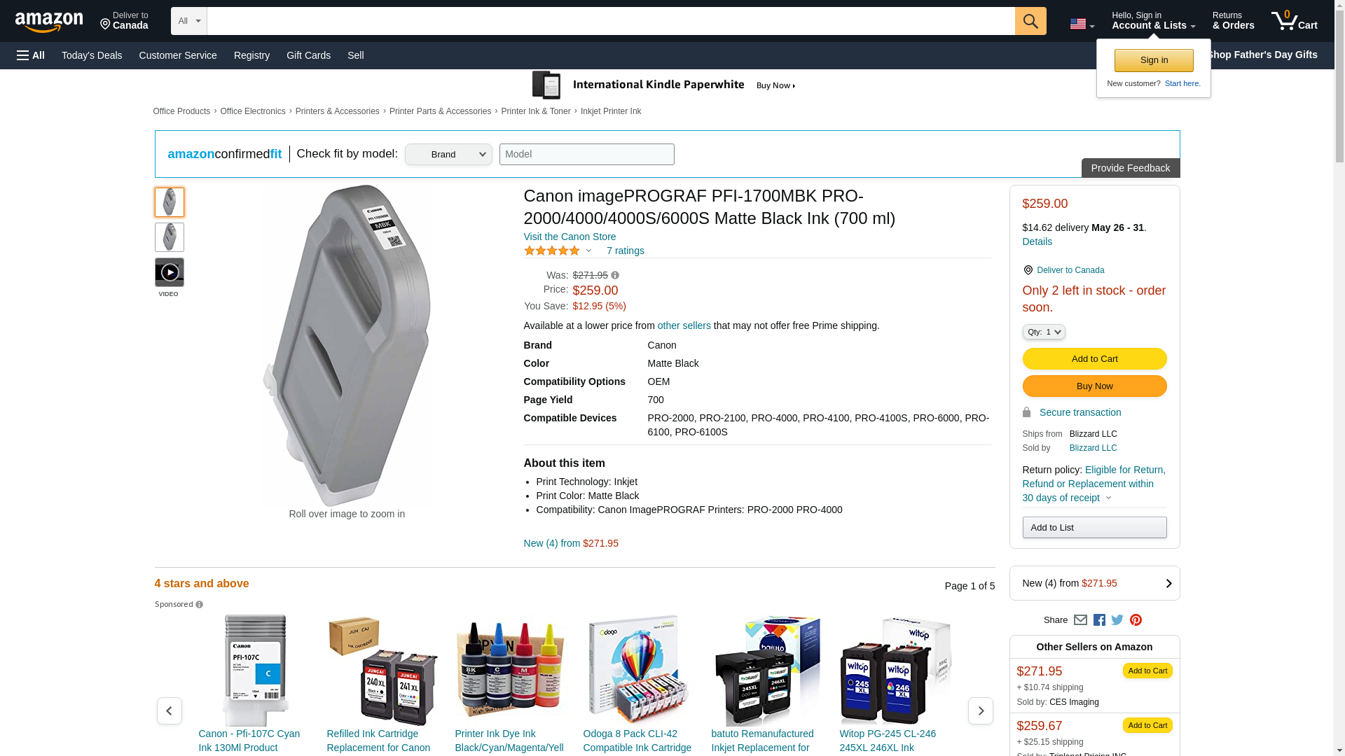 Canon PFI-1700 (0774C001AA) Standard Yield Ink Cartridge (Black Matte) in Retail Packaging