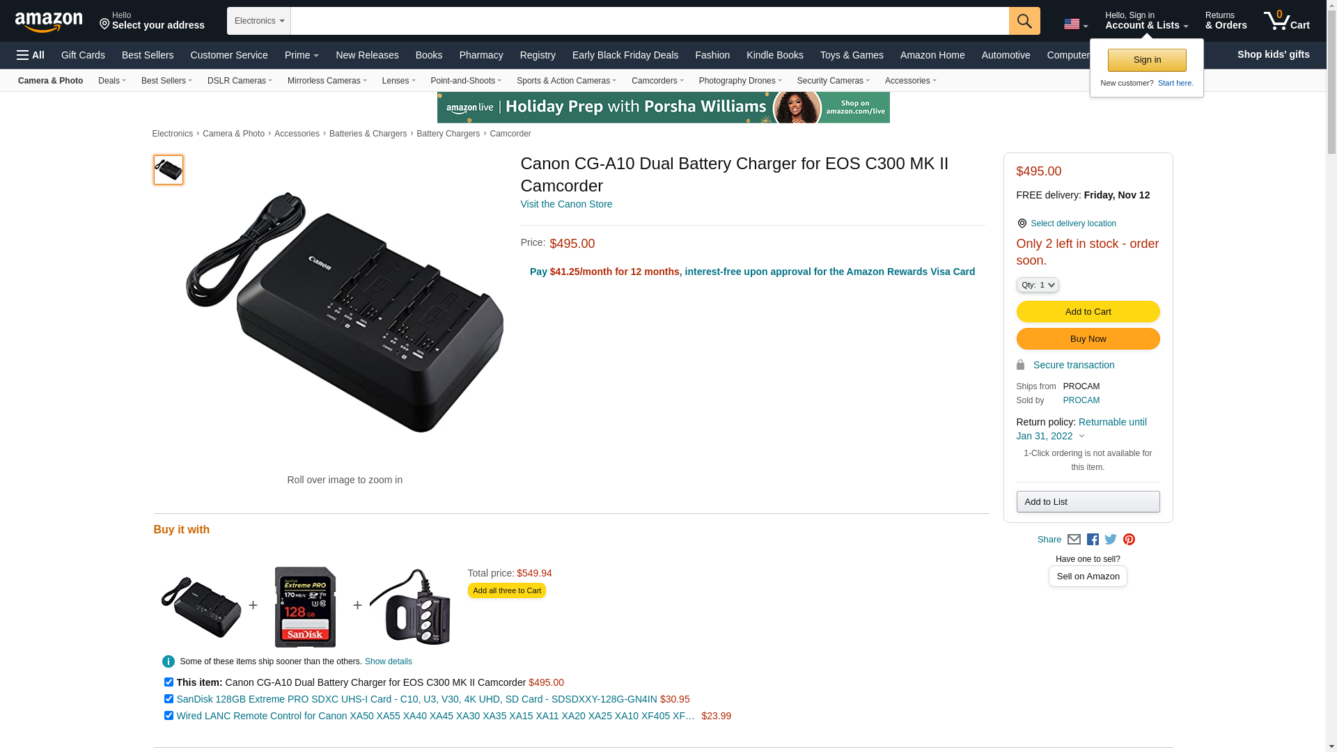 ![]() bhphotovideo.com | CACGA10 | 1 | -2 | 1 | 1 @ $495.00 |