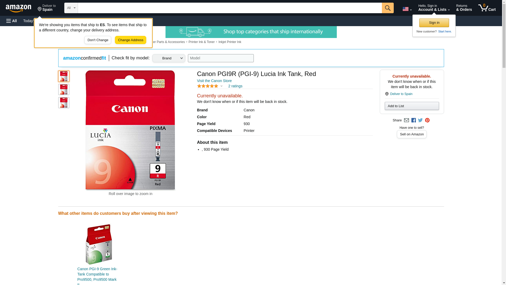 | Feature | Print Technology: InkjetPrint Color: RedCompatibility: Canon PIXMA Printers: Pro 9500, Pro 9500 Mark II, Country of Origin: Japan |