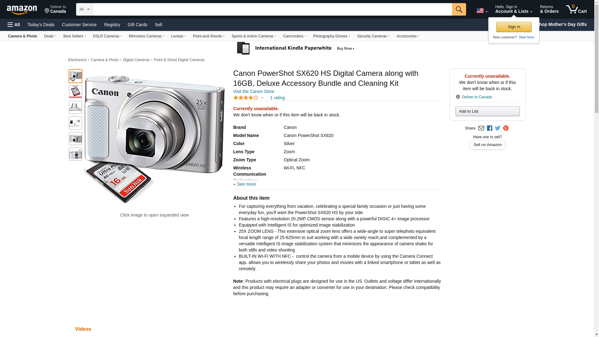 Whether traveling, celebrating family or just having fun the Canon 20.2-Megapixel PowerShot SX620 HS Digital Camera (Silver) is ready for your next shot. Enjoy the versatility of the powerful 25x optically stabilized zoom lens to capture everything from close-up to distant subjects virtually shake free. You can show off and share those images with built-in Wi-Fi and NFC for all to see. Beautiful pictures and Full HD video with the SX620 are all packed in this compact body.