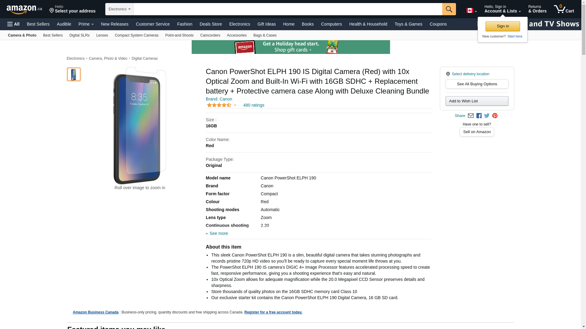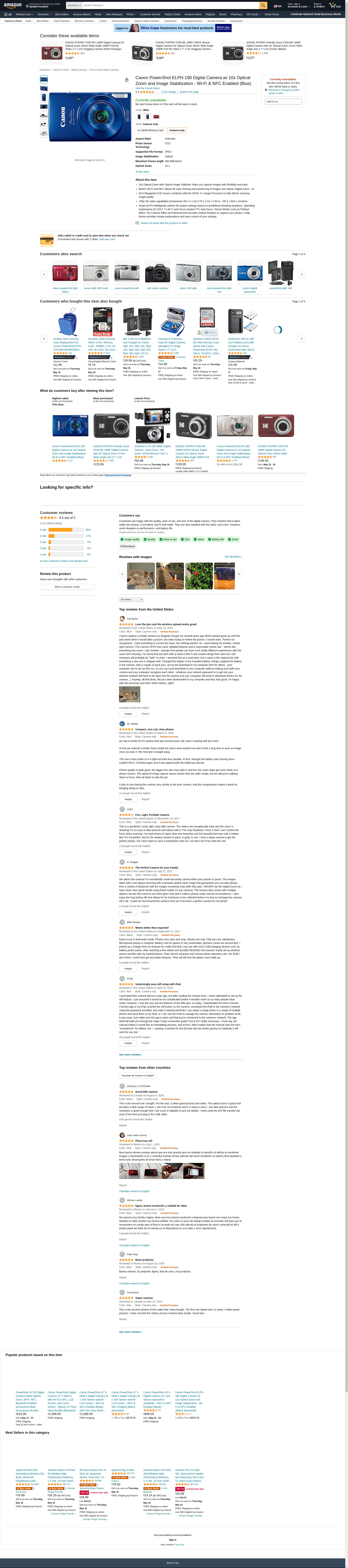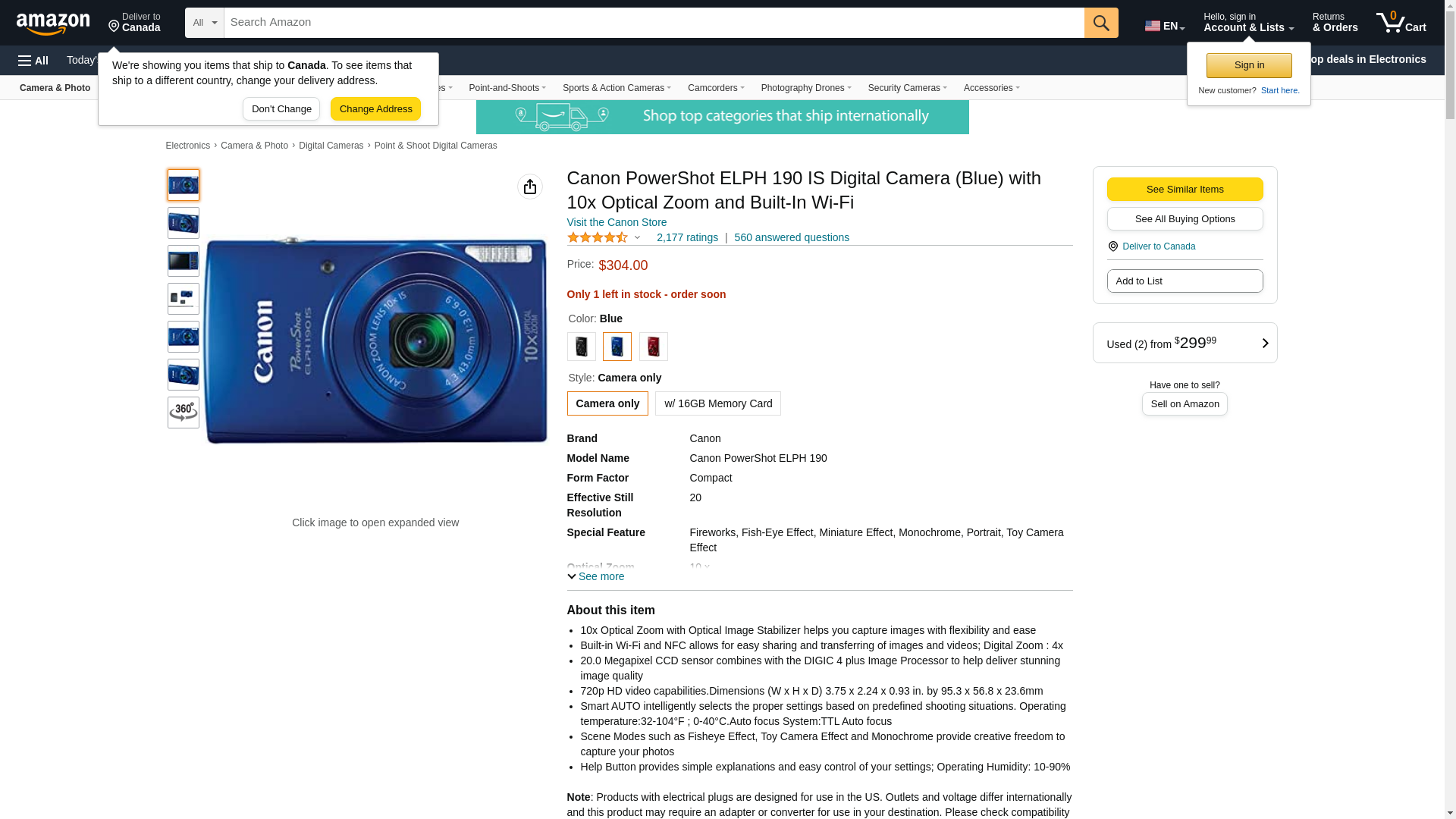 The Canon PowerShot ELPH 190 IS Camera Blue is a great Wi-Fi-enabled camera at a great price. It features 20.0 megapixels and captures 720p HD video. It also includes smart auto settings for predefined shooting situations and scene modes for expressing your creativity.