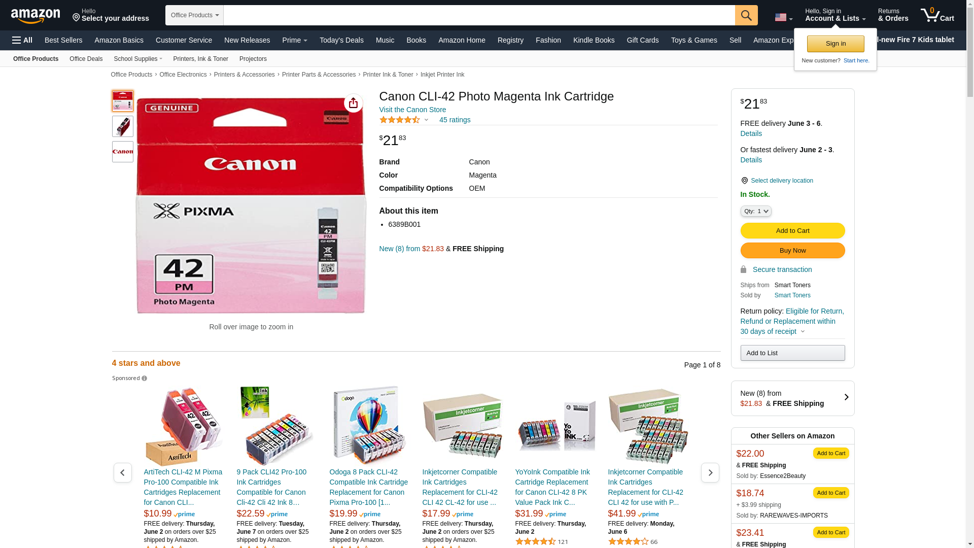 The Canon CLI-42 Magenta Ink Cartridge is a specially formulated ChromaLife100+ ink. The ink produces professional quality & long-lasting photo prints, ideal for displaying printed works of art. Canon's proprietary FINE (Full Photolithographic Inkjet Nozzle Engineering) technology provides sharpness and detail. The individual ink system helps increase efficiency since you'll only be replacing the color that runs out.