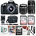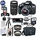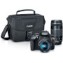 - Accessory bundle contains an EF-S 18-55mm f/3.5-5.6 IS II Lens, EF 75-300mm f/4-5.6 III Lens, Deluxe Padded Case, 2 X 32GB memory cards, 58mm 2.2x telephoto professional lens, Pro Series HD 58mm wide angle lens, 3 Piece 58mm filter kit, digital ultraviolet filter, SD card reader/writer, wrist grip strap, memory card wallet, deluxe starter cleaning kit, universal manual flash, 58" tripod
