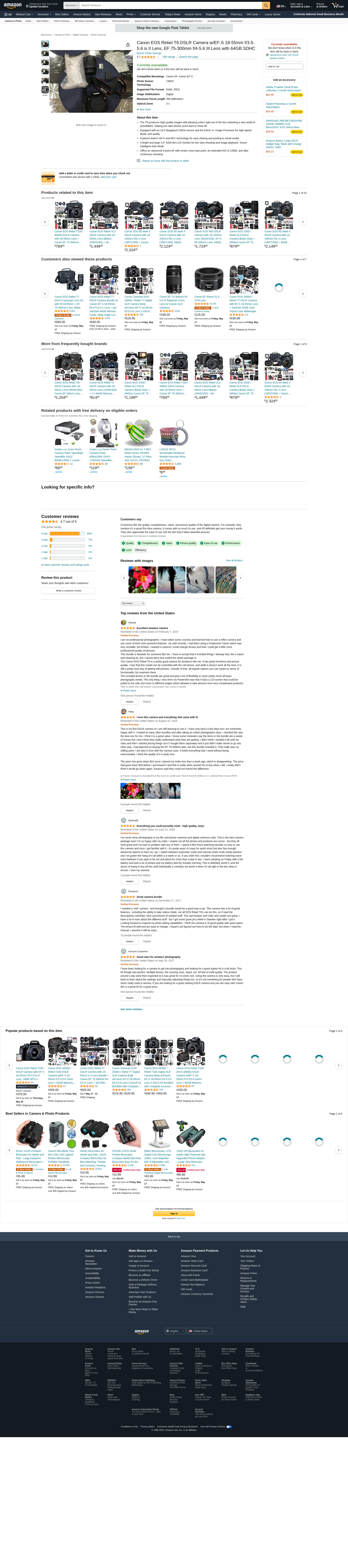 Canon EOS Rebel T6 DSLR Camera w/ EF-S 18-55mm Lens + EF 75-300mm Lens + 2 X 32 GB Memory + Premium Accessory Bundle