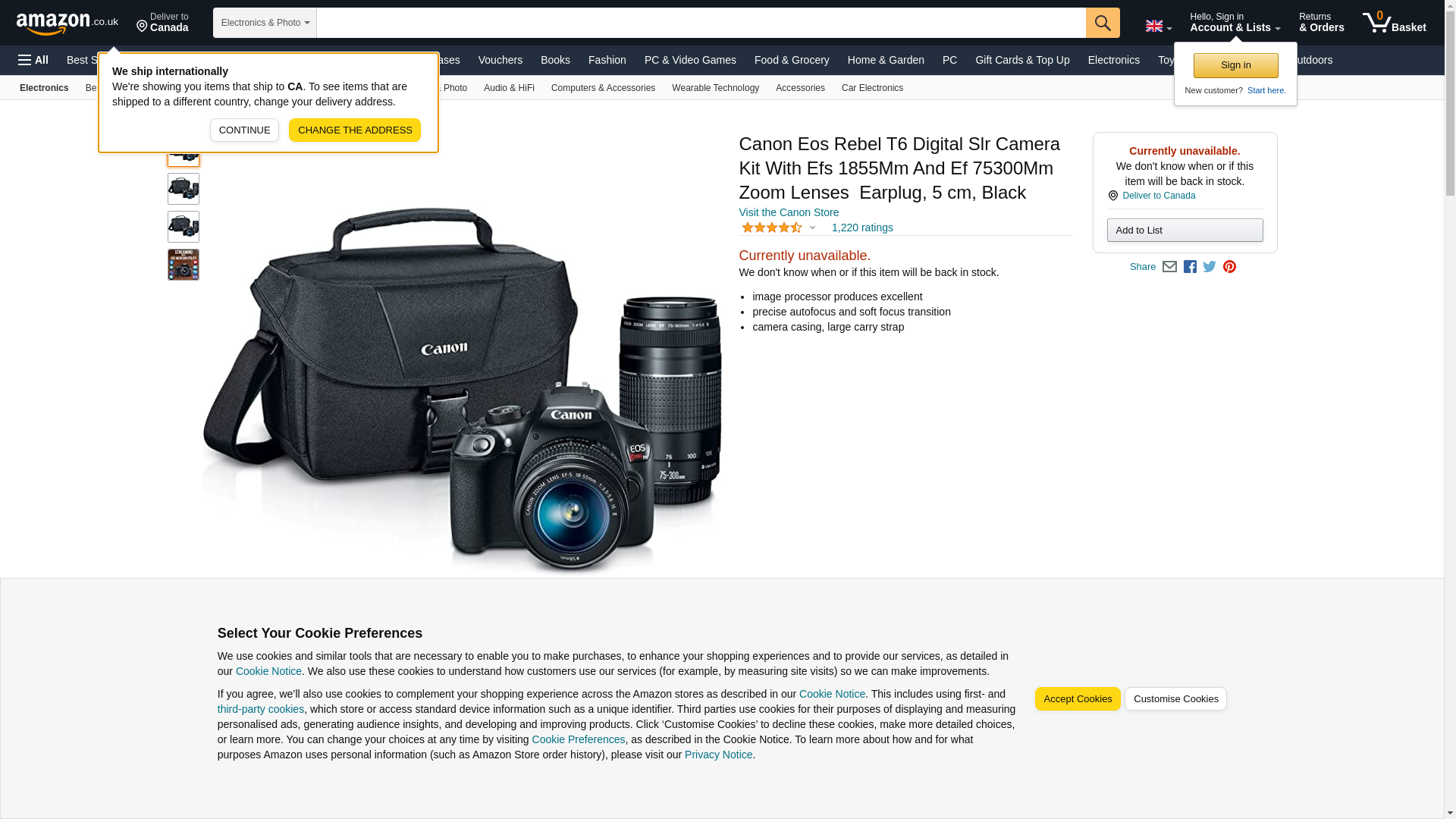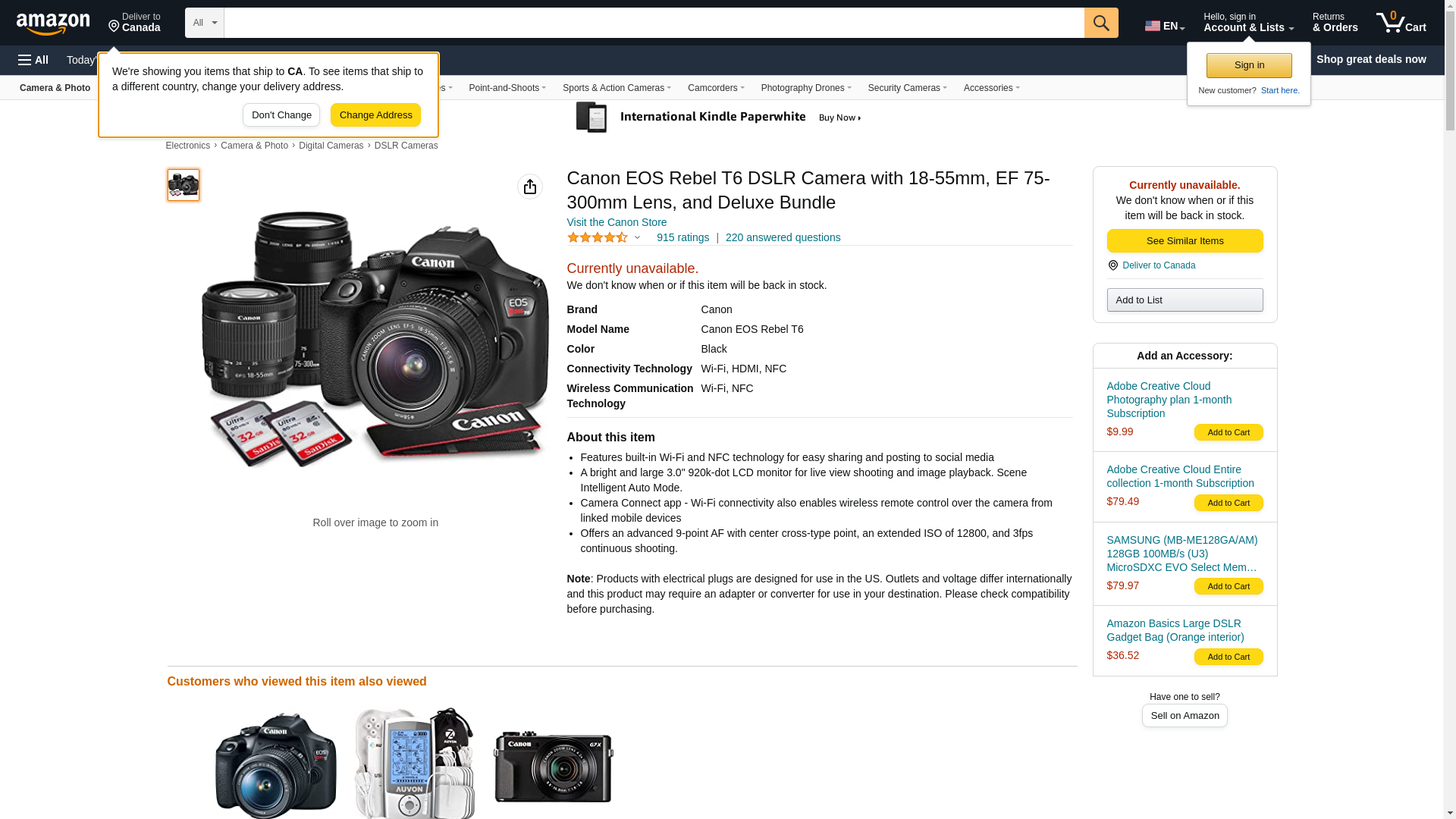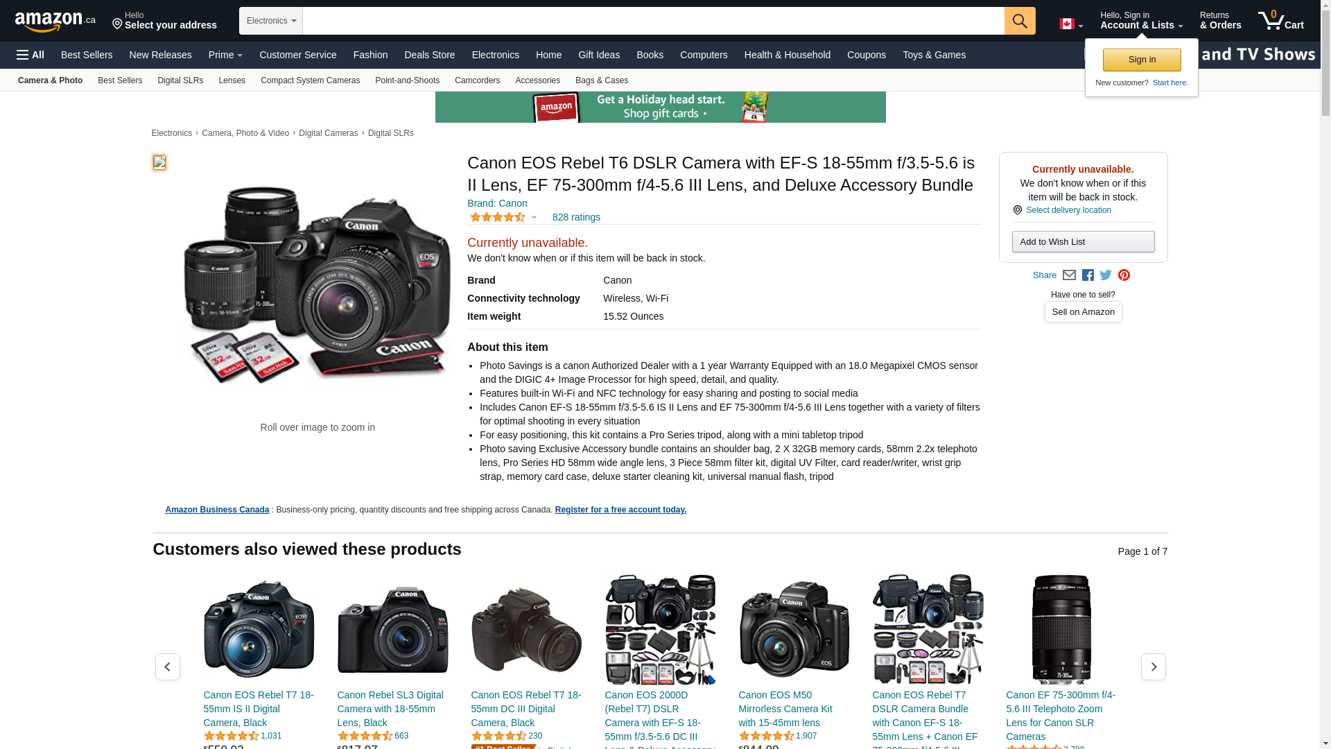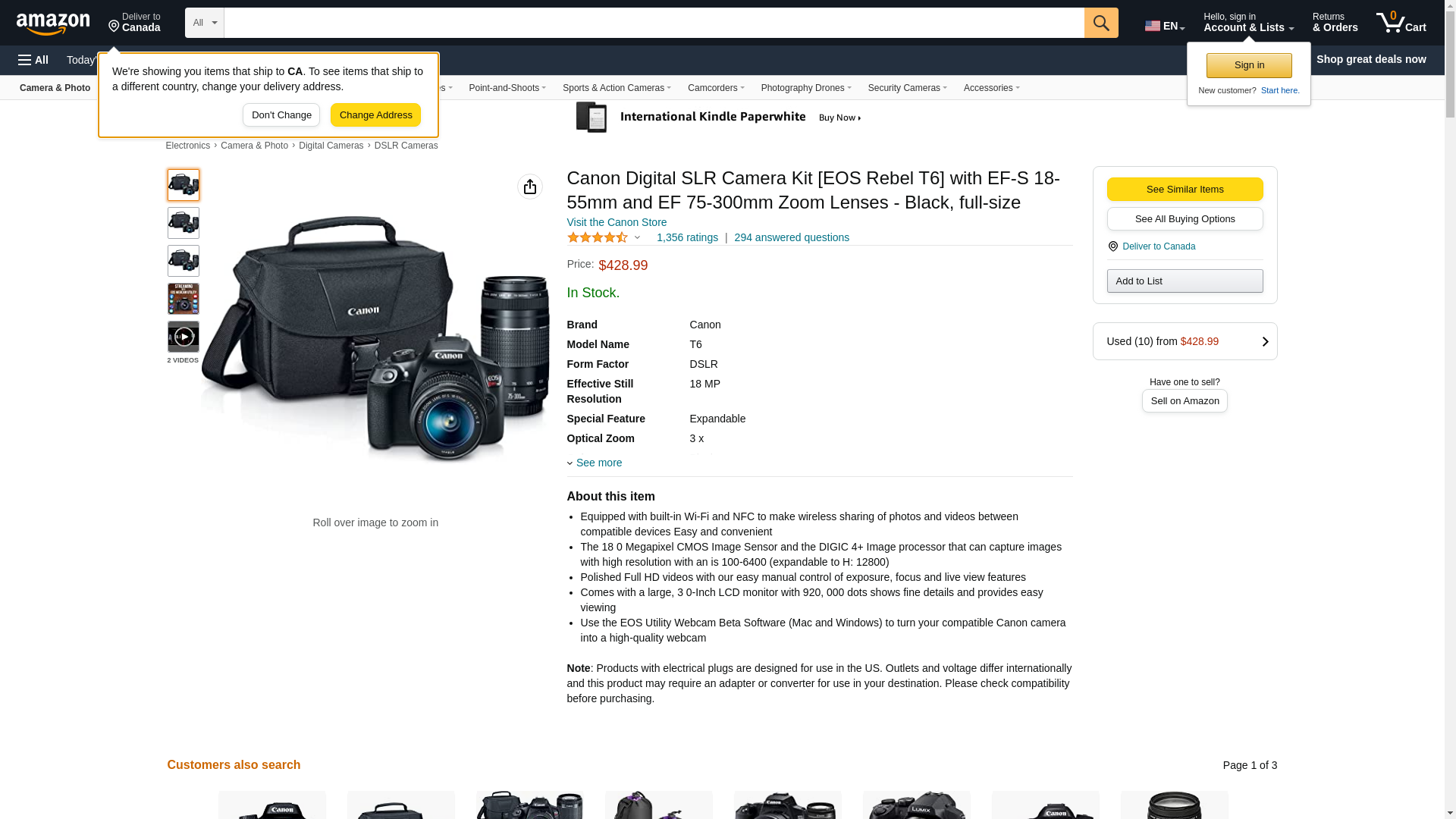 Canon Digital SLR Camera Kit [EOS Rebel T6] with EF-S 18-55mm and EF 75-300mm Zoom Lenses - Black, Full-Size