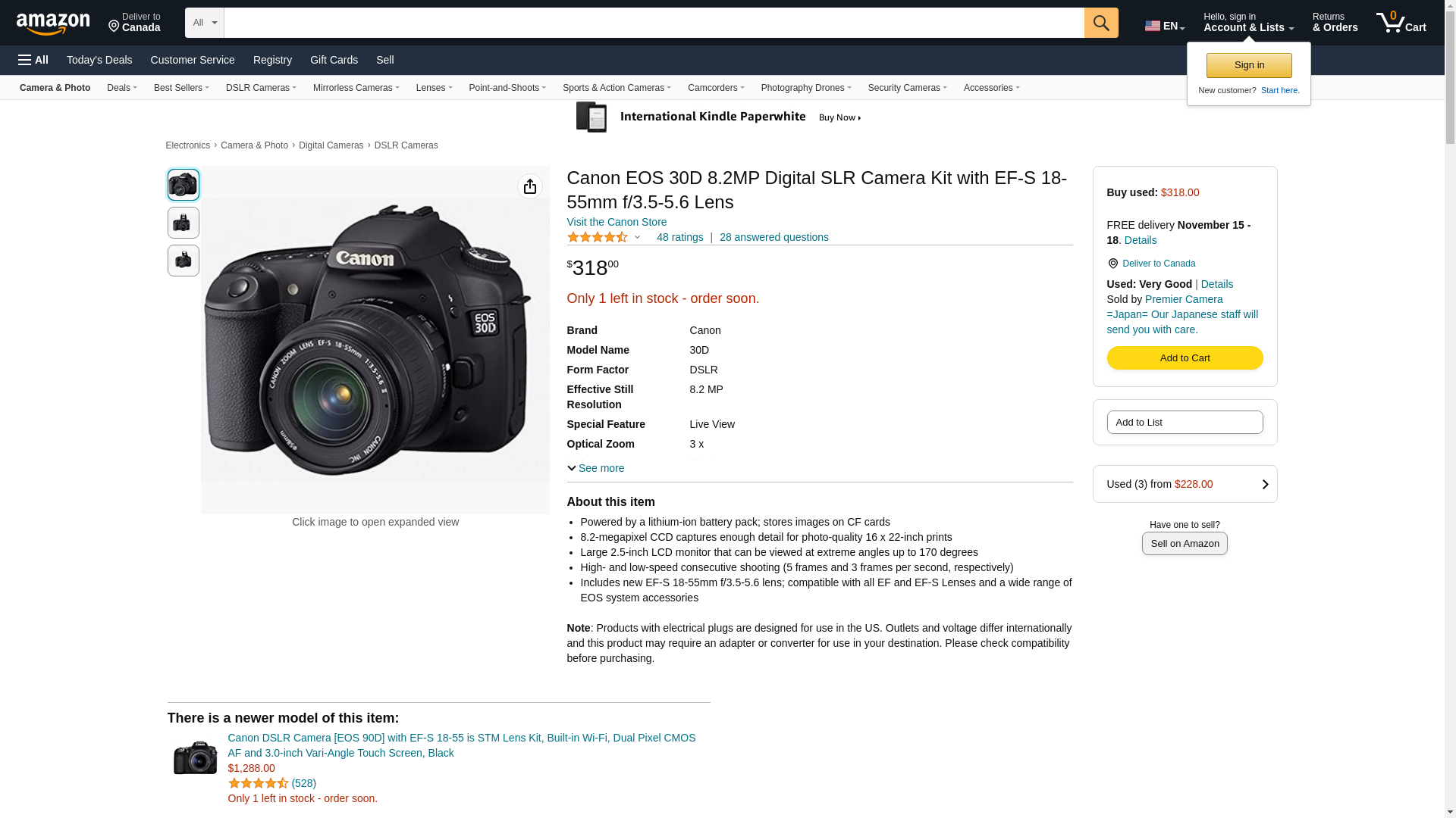 Canon EOS 30D 8.2MP Digital SLR Camera Kit with EF-S 18-55mm f/3.5-5.6 Lens