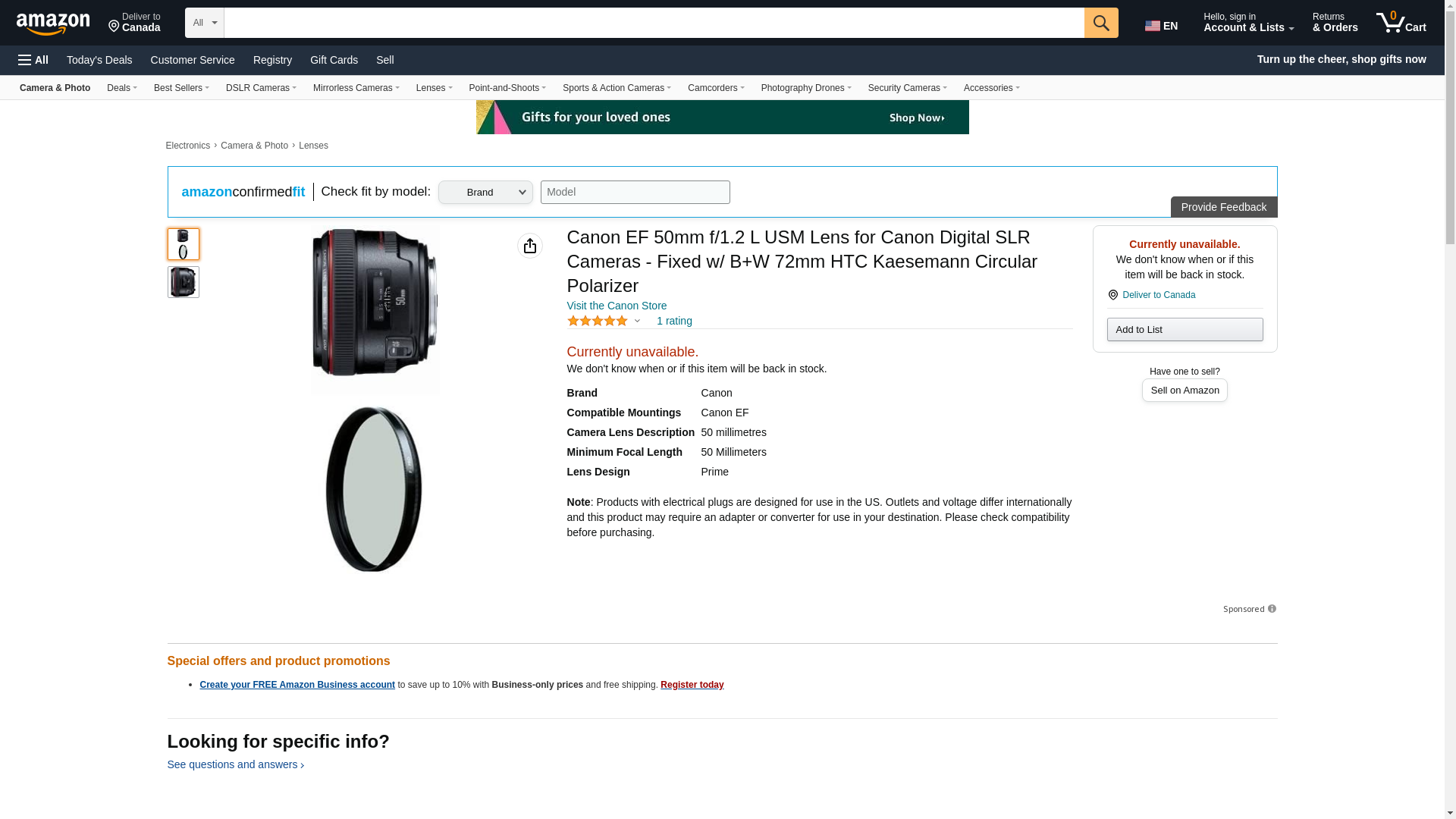 Canon EF 50mm f/1.2 L USM Lens for Canon Digital SLR Cameras - Fixed