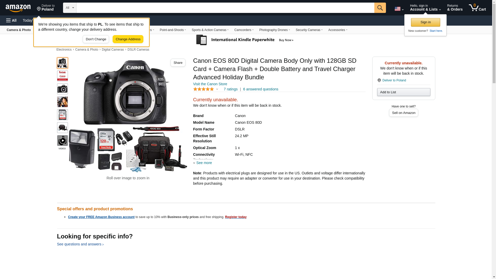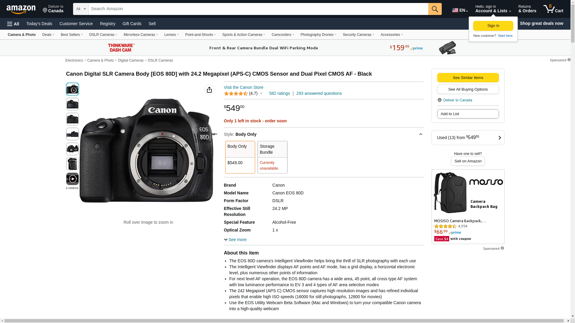 Canon Digital SLR Camera Body [EOS 80D] with 24.2 Megapixel (APS-C) CMOS Sensor and Dual Pixel CMOS AF - Black