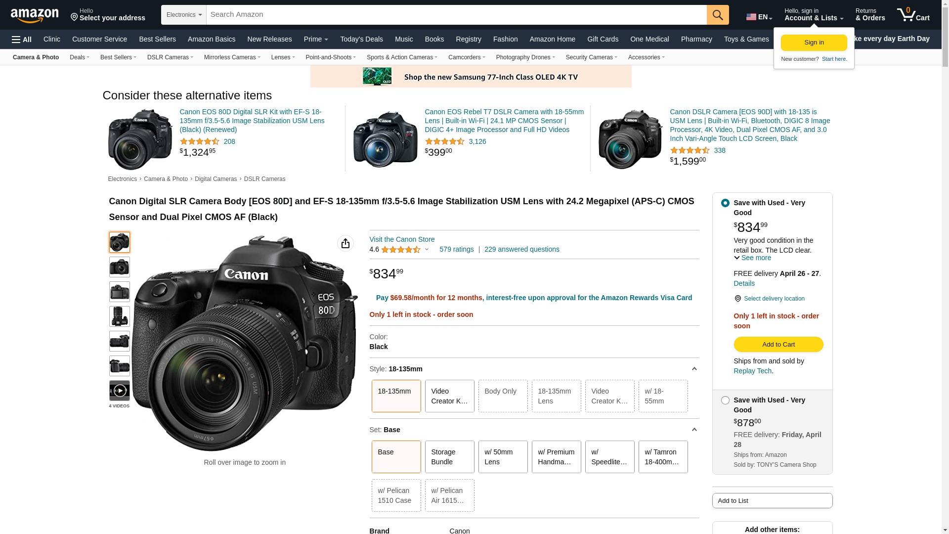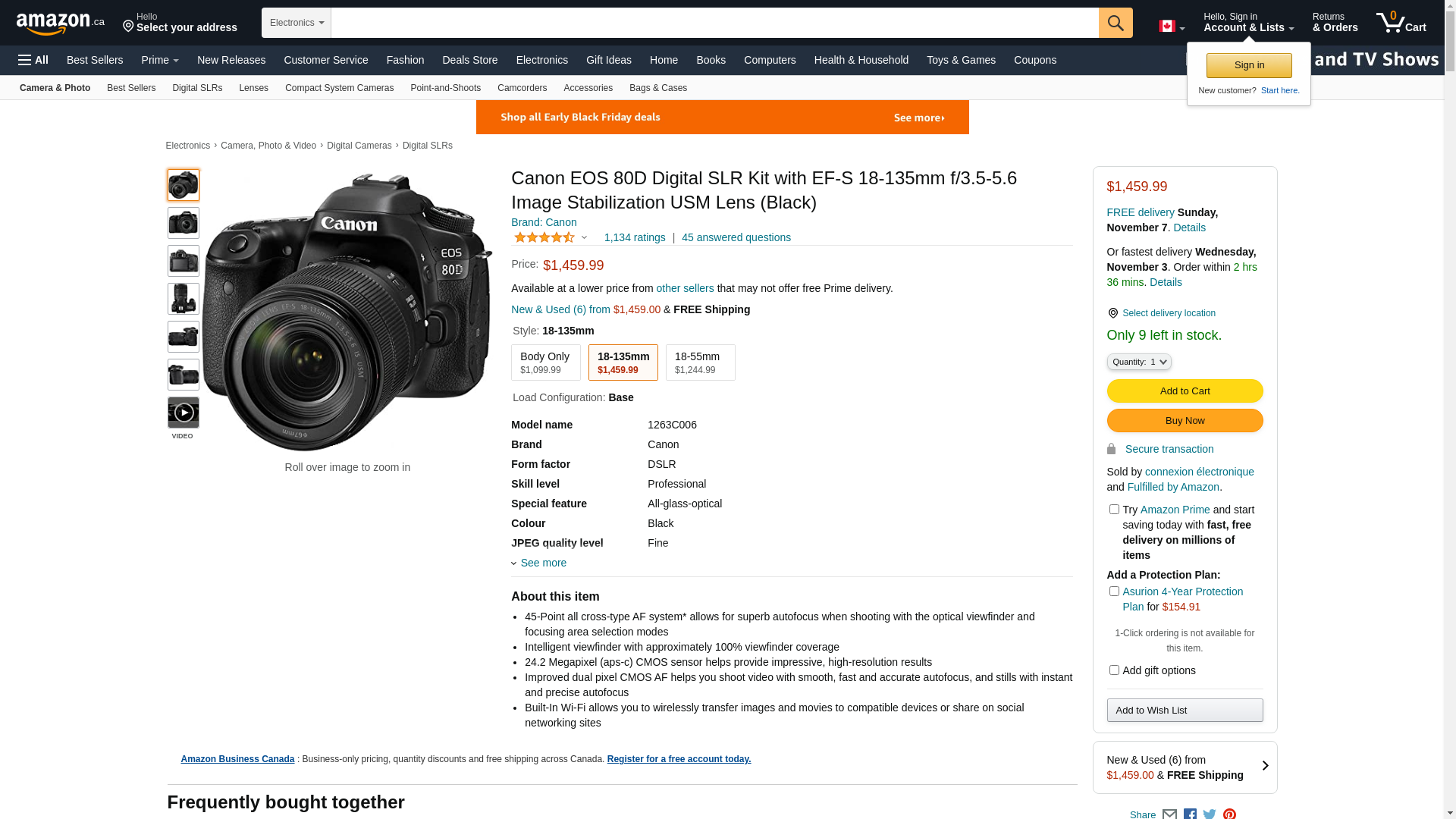 Canon EOS 80D Digital SLR Kit with EF-S 18-135mm f/3.5-5.6 Image Stabilization USM Lens (Black)