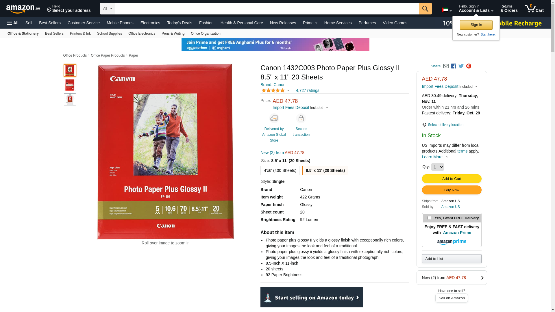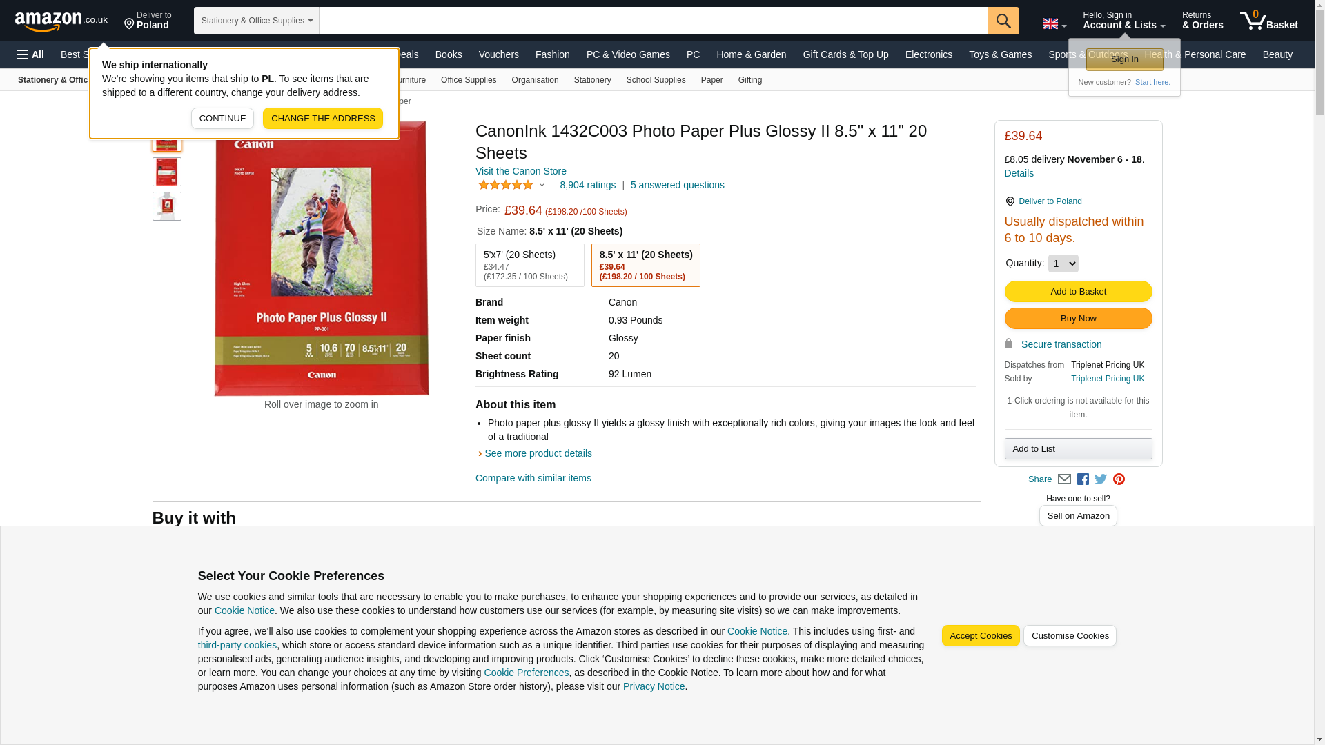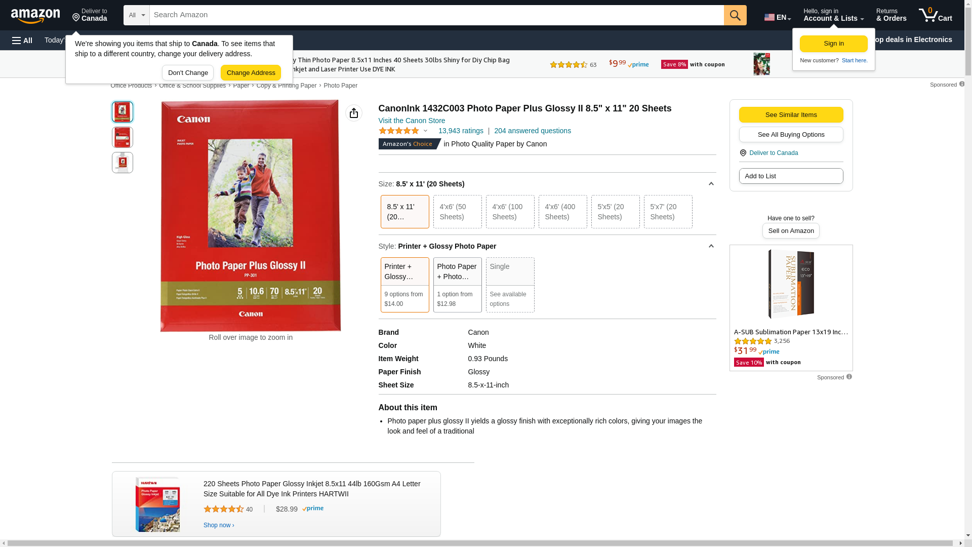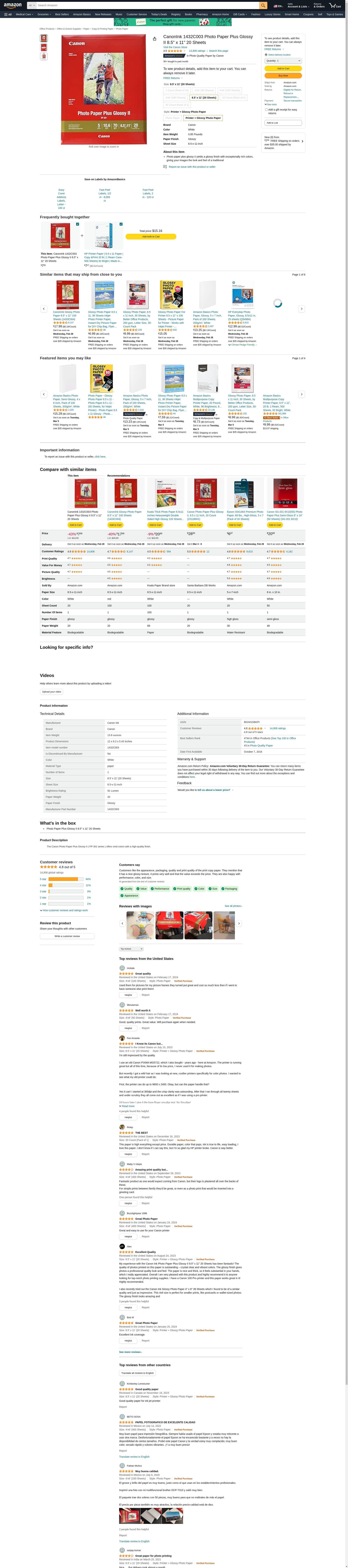 CanonInk 1432C003 Photo Paper Plus Glossy II 8.5" x 11" 20 Sheets