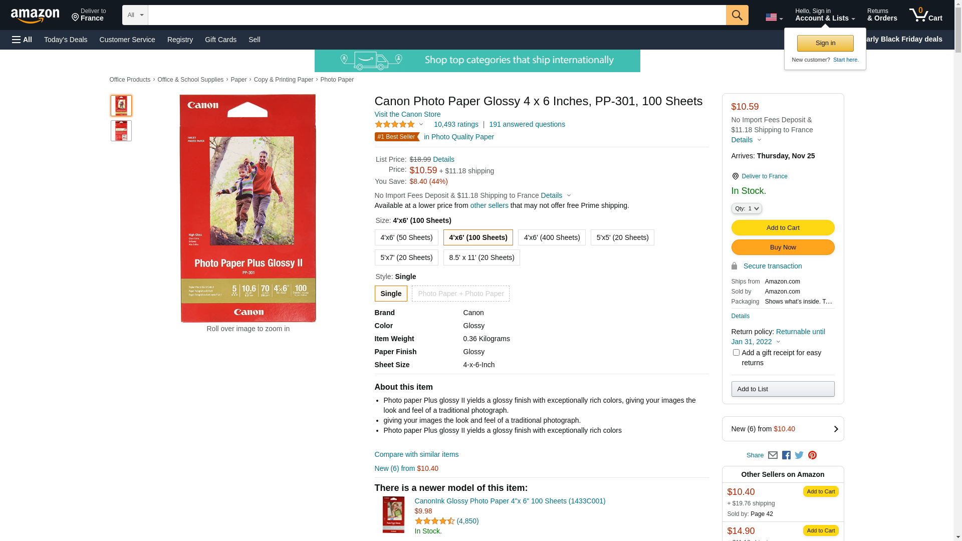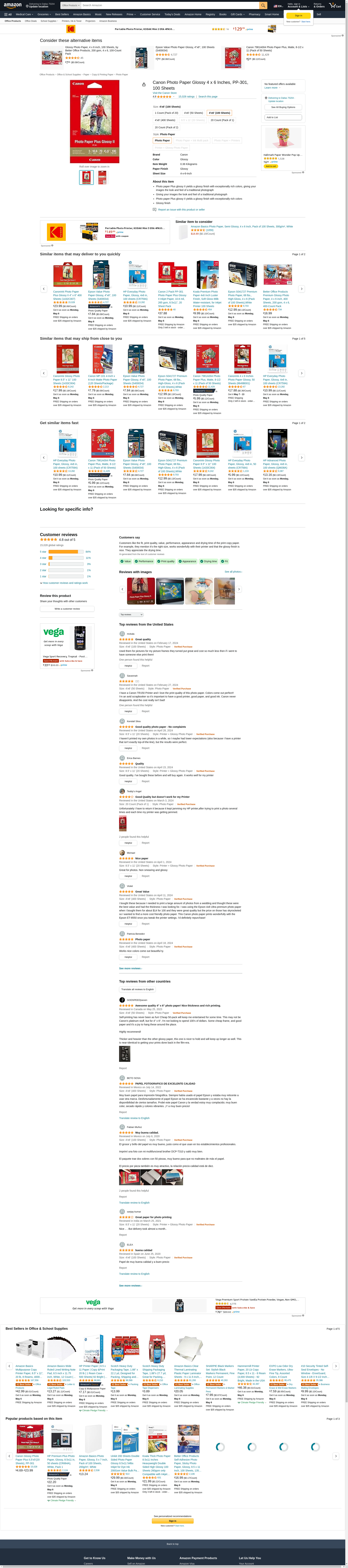 Made for delivering high-quality photo prints, the Canon 4x6 Photo Paper Plus Glossy II - 400 Sheets is a smart choice for everyone. The pages have a single-sided, high-gloss surface with a 265-gsm basis weight and a thickness of 10.6 mils.