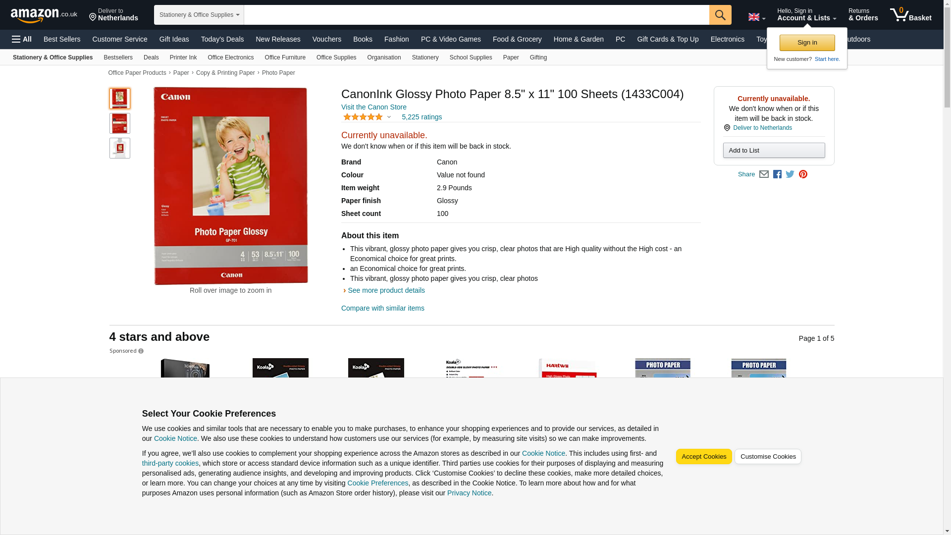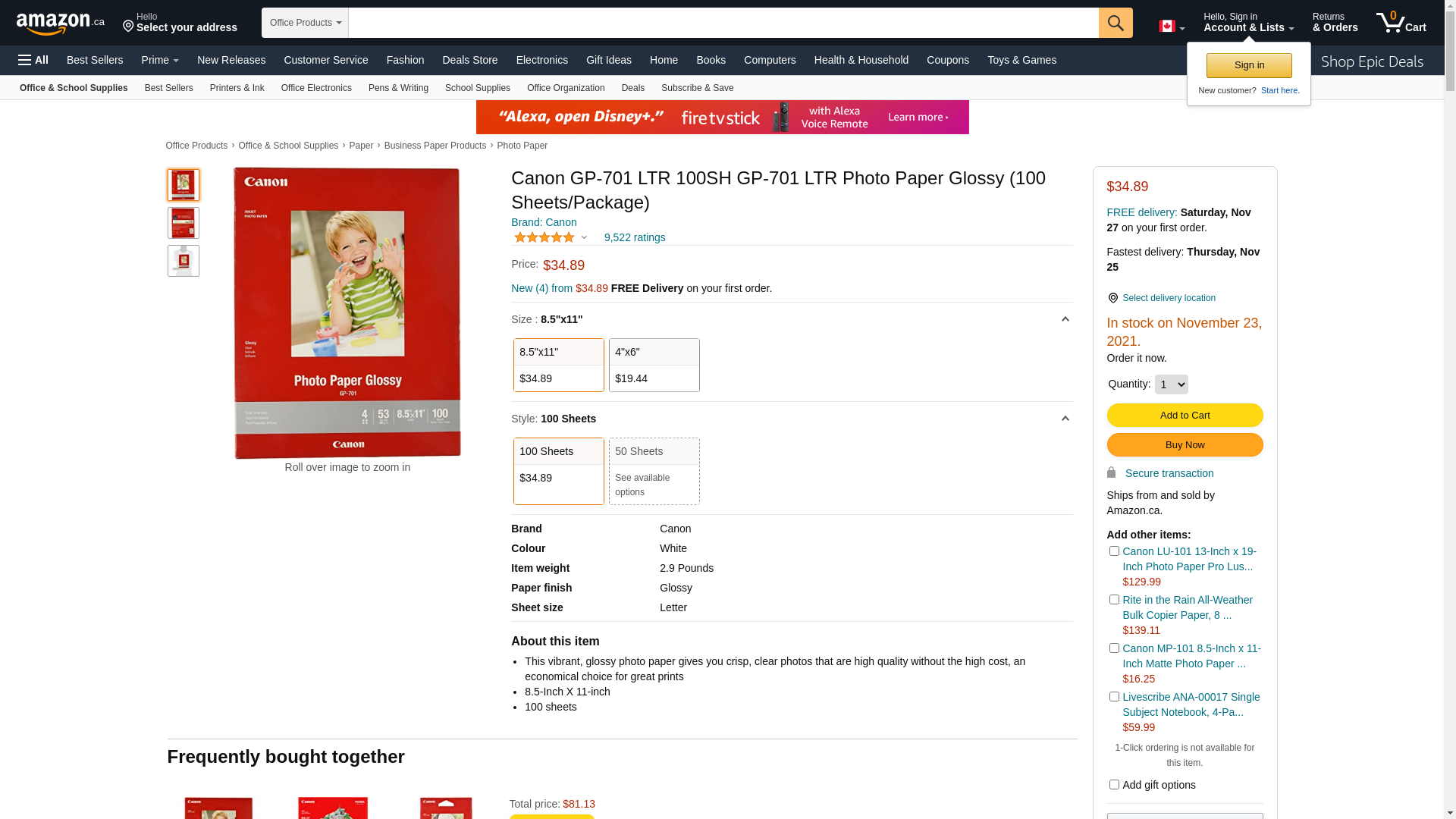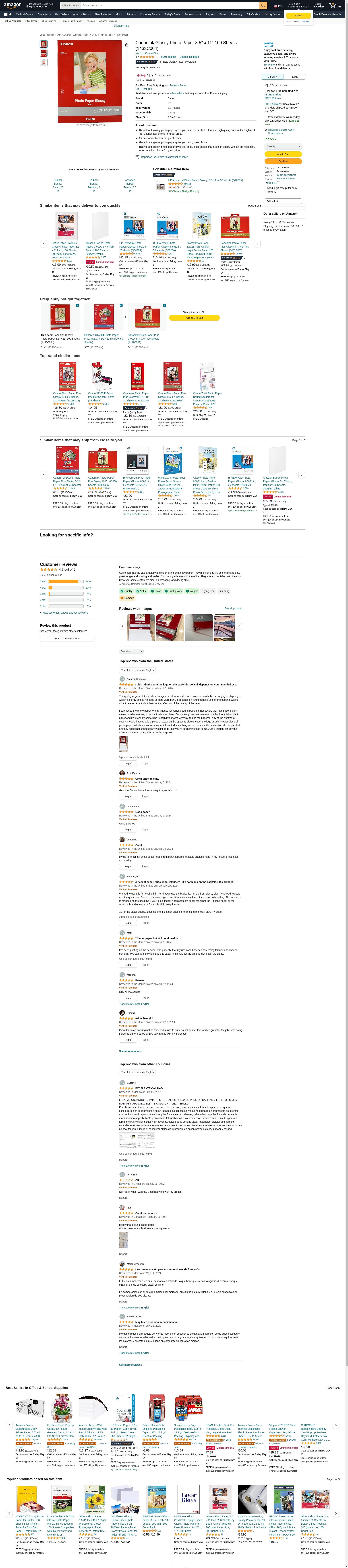 CanonInk Glossy Photo Paper 8.5" x 11" 100 Sheets (1433C004)