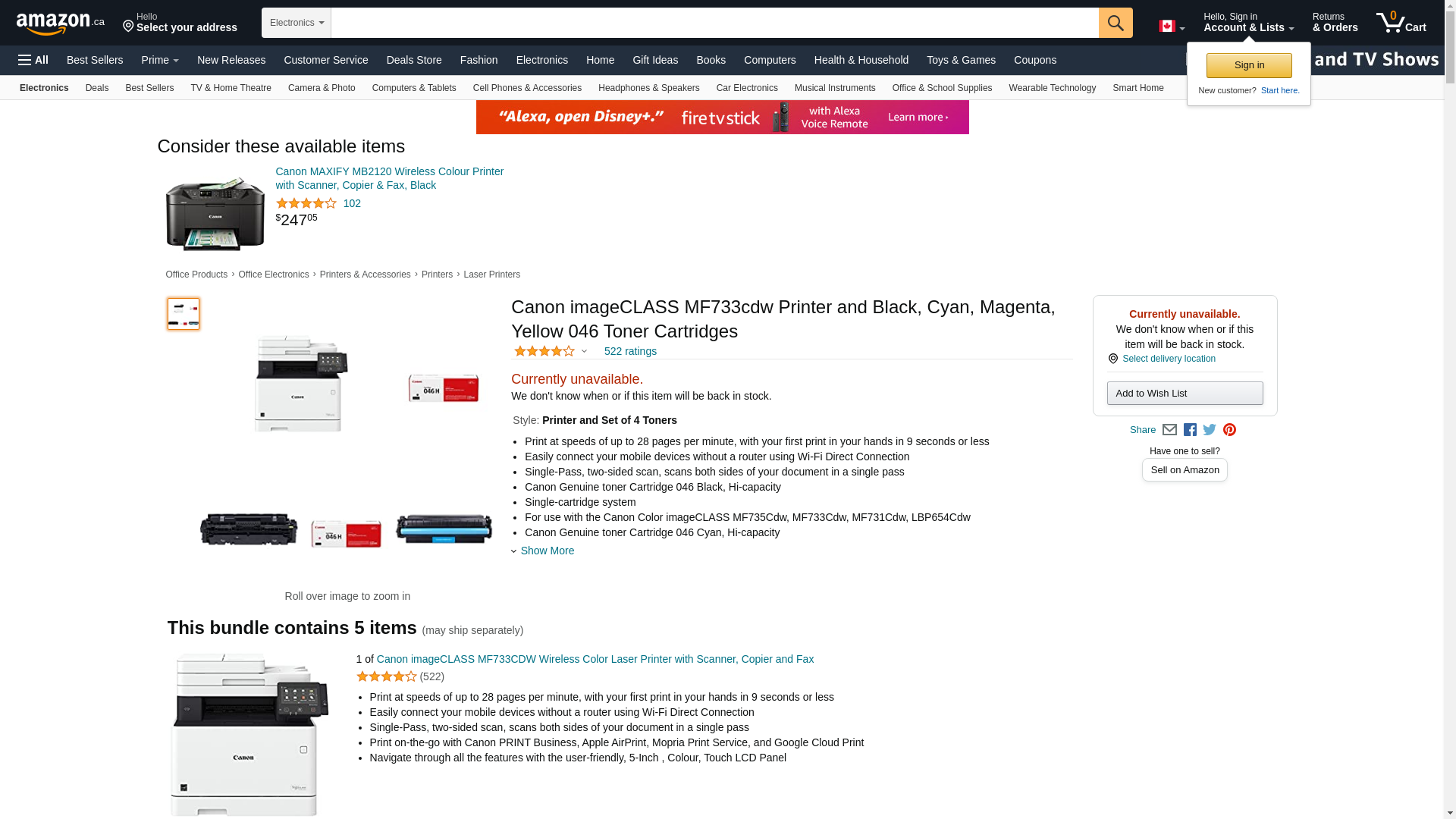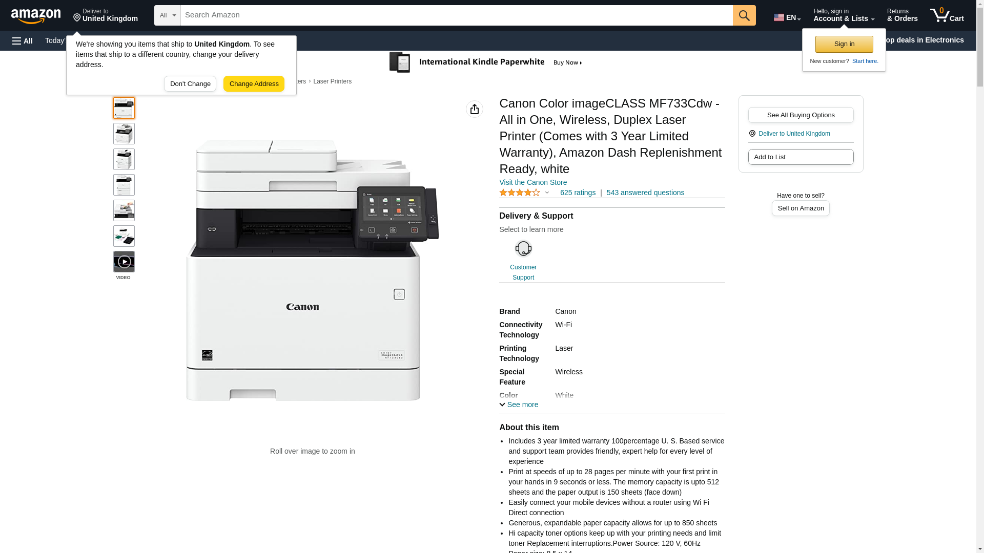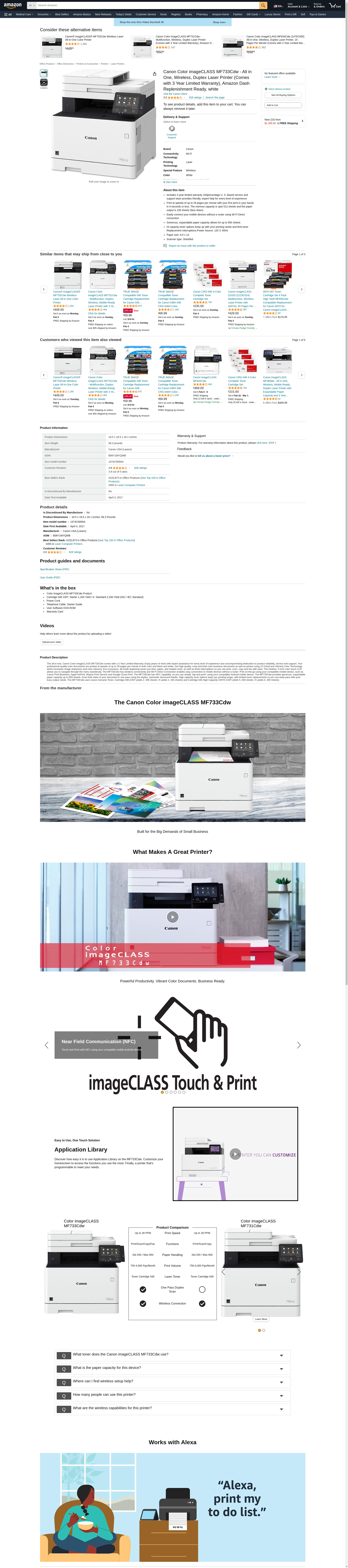 Canon Color imageCLASS MF733Cdw - All in One, Wireless, Duplex Laser Printer (Comes with 3 Year Limited Warranty), Amazon Dash Replenishment Ready, white