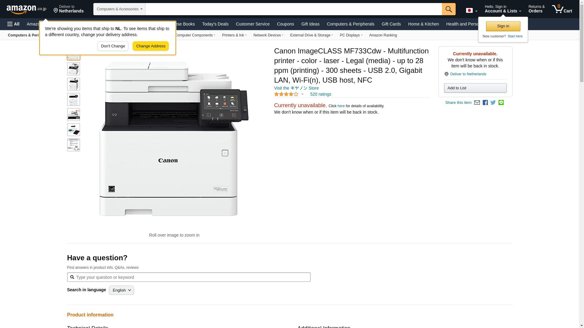 | Part number | Canon Color imageCLASS MF733Cdw |