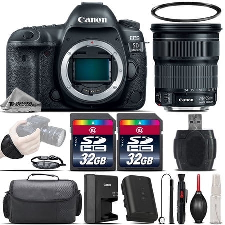 <b>Canon EOS 5D Mark IV DSLR Camera</b><br> An outstanding still photography option and an able 4K-capable video machine. This multimedia maven offers a newly developed 30.4MP full-frame CMOS sensor paired with the DIGIC 6+ image processor in order to balance fine detail and resolution with low-light performance and sensitivity. It is able to work within a native range of ISO 100-32000, which can then be expanded to an impressive ISO 50-102400, for sharp, low-noise images in a variety of conditions. Along with these improvements to image quality, users will enjoy a performance boost across the board with an enhanced AF system, built-in Wi-Fi, NFC, and GPS, and much more.<br><br> <b>Canon Accessories:</b><br>★ Canon EOS 5D Mark IV DSLR Camera <br> ♦ Canon EF 24-105mm f/3.5-5.6 IS STM Lens<br> ♦ Canon LP-E6N Lithium-Ion Battery Pack (7.2V, 1865mAh)<br> ♦ Canon LC-E6 Charger for LP-E6 Battery Pack<br> ♦ Canon Eyecup Eg<br> ♦ Canon RF-3 Body Cap for Canon <br> ♦ Canon IFC-150U II USB 3.1 Gen 1 Interface <br> ♦ Neck Strap<br> ♦ Software CD-ROM<br> ♦ Limited 1-Year Warranty<br><br> <b>Additional Accessories:</b><ul><br><li> 128GB High Speed Transcend Memory Cards </li><li>Canon 100-ES Case - Padded, Touch-Fastening Interior Divider</li><li>Gripster Tripod</li><li>Hand Grip</li><li>Shoulder Strap</li><li>Wireless Remote Control</li><li>Replacement Battery</li><li>Cleaning Kit</li><li>Pen & Blower</li></ul>