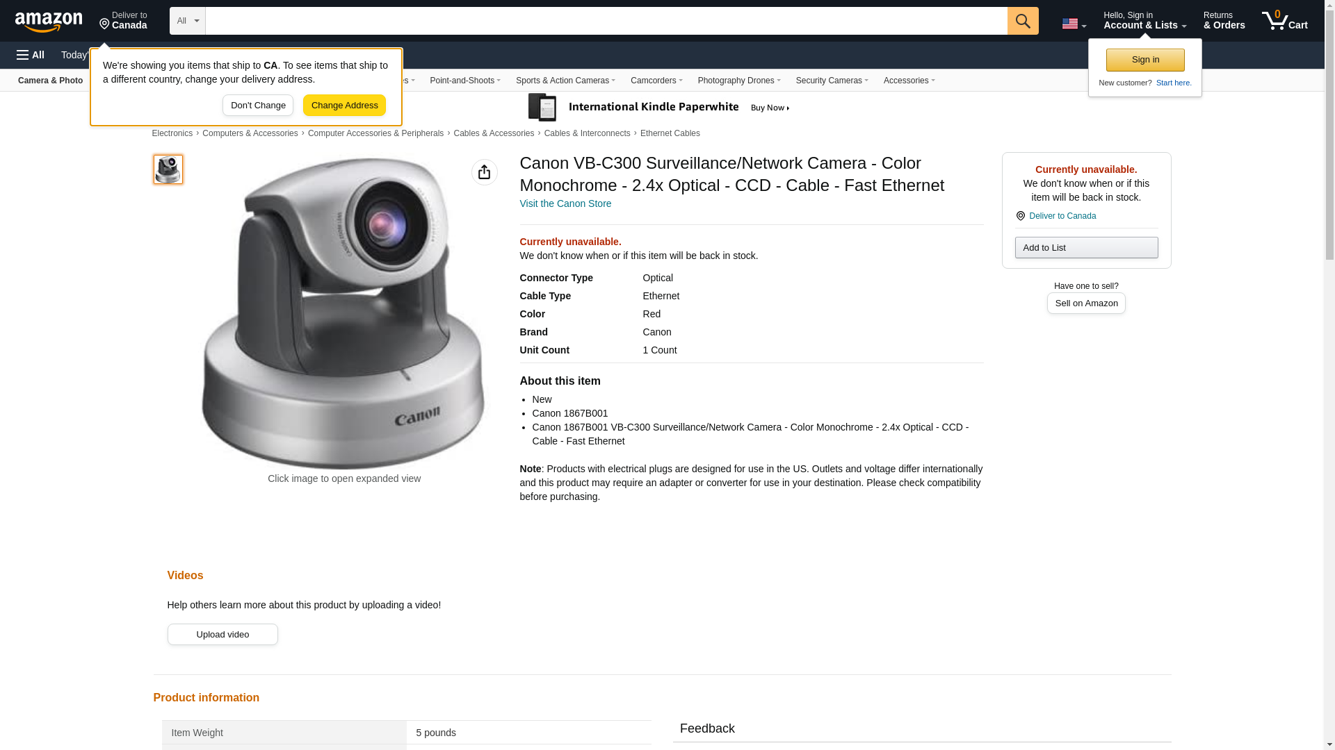 - Canon VB-C300 Surveillance/Network Camera - Color Monochrome - 2.4x Optical - CCD - Cable - Fast Ethernet (1867B001)