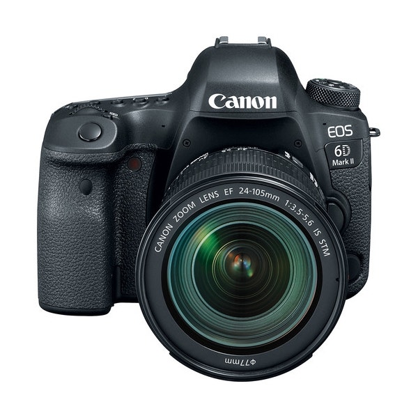 <b>Canon EOS 6D Mark II DSLR Camera </b><br> Step up into the full-frame game with the EOS 6D Mark II DSLR Camera from Canon. Making high-performance full-frame imaging more accessible, the 6D Mark II makes numerous advancements over its predecessor to improve upon every aspect of image capture and creation. The main update comes in the form of a 26.2MP CMOS sensor and the use of the DIGIC 7 Image Processor to deliver sharper, more vivid imagery in a variety of shooting situations. This setup offers an improved native sensitivity range of ISO 100-40000, which can then be expanded to ISO 50-102400, as well as speedy shooting rates of up to 6.5 fps.<br><br> <b>In Canon Box:</b><br>★ Canon EOS 6D Mark II DSLR Camera <br> ♦ Canon EF 24-105mm f/3.5-5.6 IS STM Lens<br> ♦ Canon LP-E6N Lithium-Ion Battery Pack (7.2V, 1865mAh<br> ♦ Canon LC-E6 Charger for LP-E6 Battery Pack<br> ♦ Canon Eyecup Eb<br> ♦ Canon RF-3 Body Cap for Canon EOS Cameras<br> ♦ EW-EOS6DMKII Wide Neck Strap<br> ♦ Limited 1-Year Warranty<br><br> <b>Additional Accessories:</b><ul><li> 128GB High Speed Transcend Memory Cards </li><li>Canon 100-ES Case - Padded, Touch-Fastening Interior Divider</li><li>Gripster Tripod</li><li>Hand Grip</li><li>Shoulder Strap</li><li>Wireless Remote Control</li><li>Replacement Battery</li><li>Cleaning Kit</li><li>Pen & Blower</li></ul>