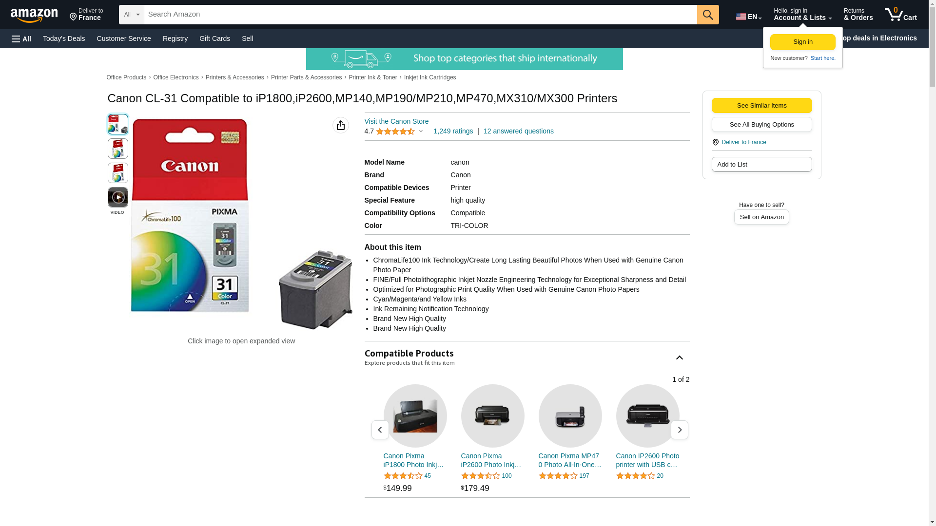| Feature | (CL-31) iP1800 Tri-Color Ink. |