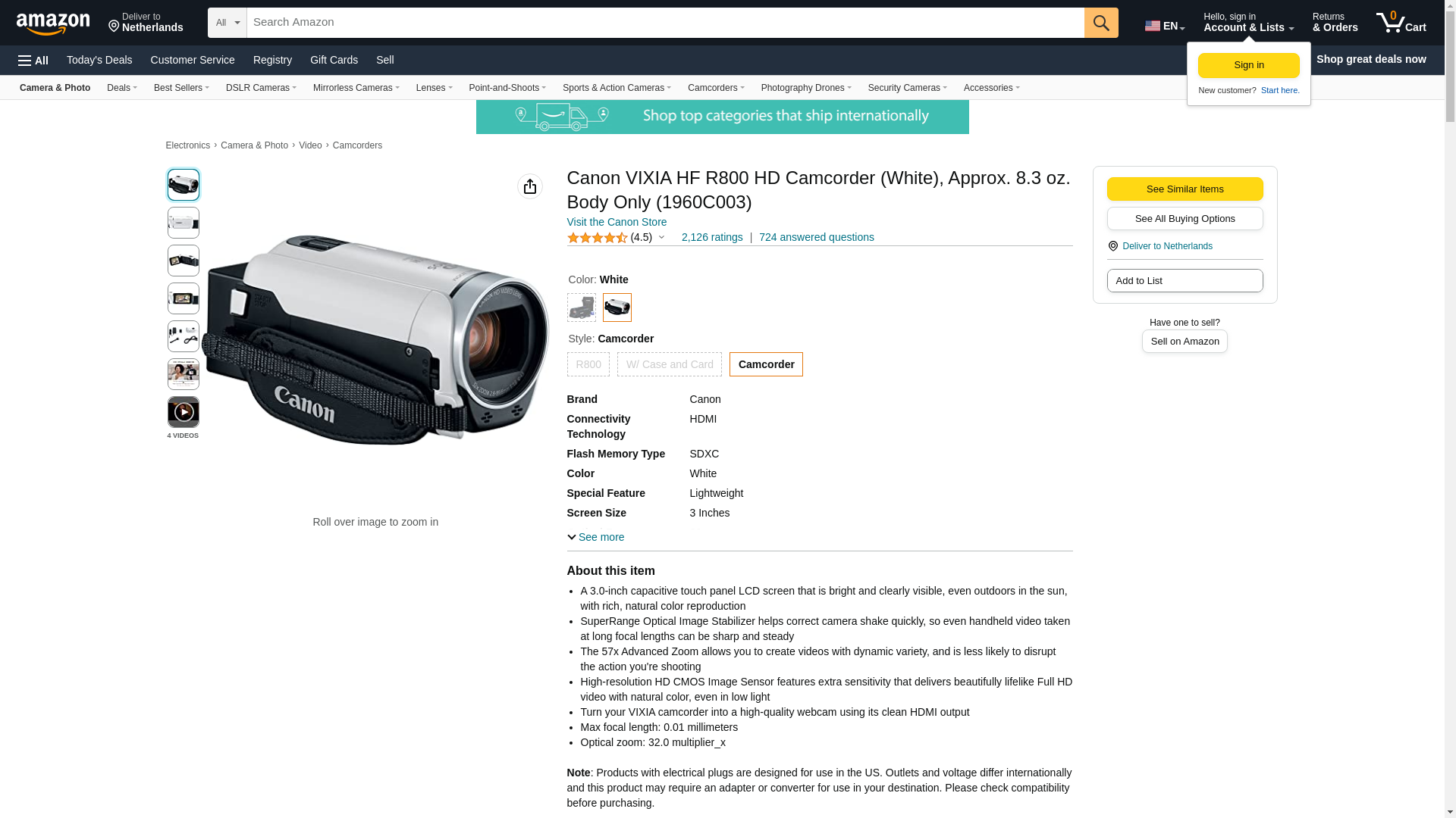 Canon VIXIA HF R800 Camcorder (White)
