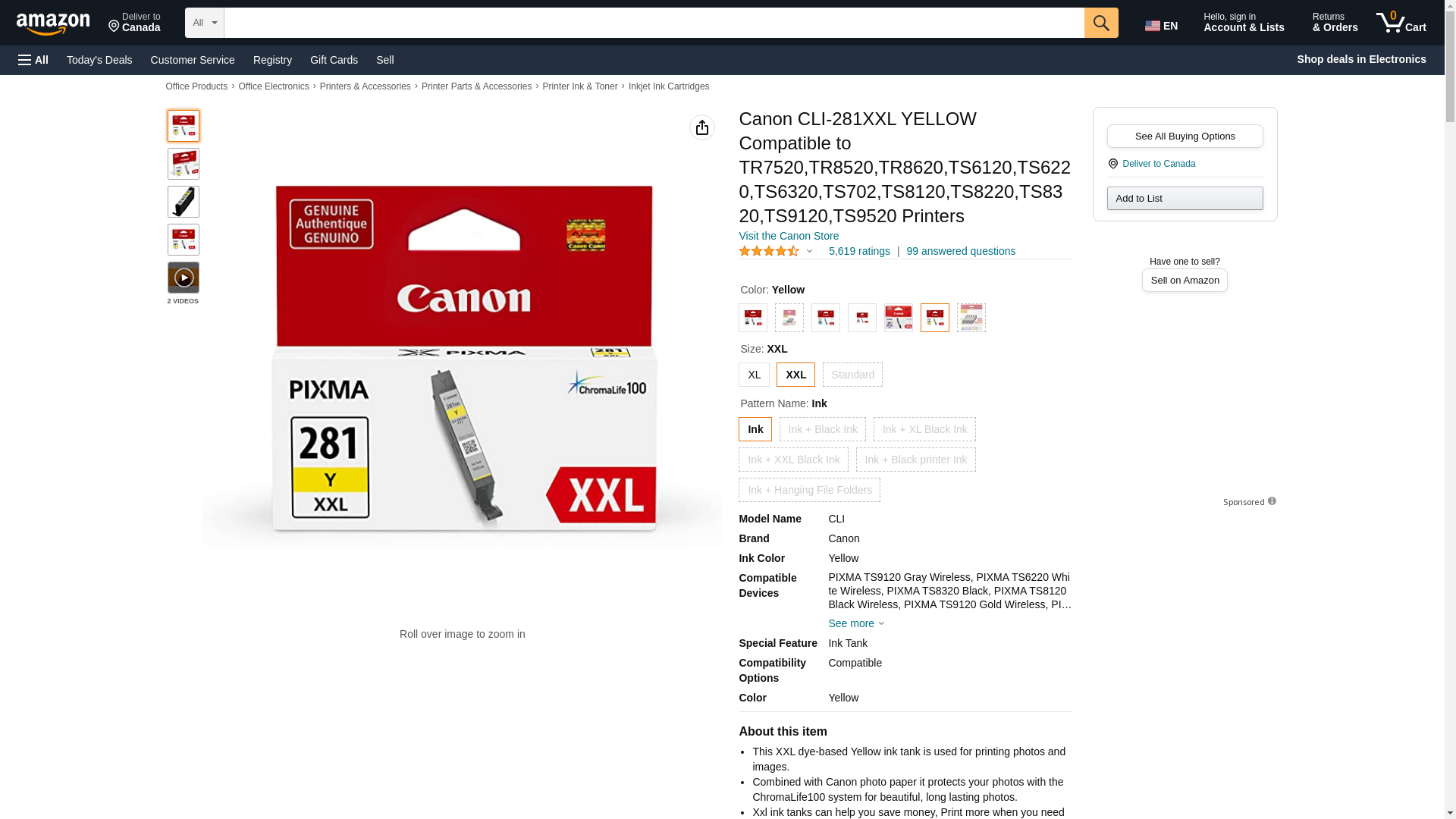 Canon CLI-281XXL YELLOW Compatible to TR7520,TR8520,TR8620,TS6120,TS6220,TS6320,TS702,TS8120,TS8220,TS8320,TS9120,TS9520 Printers