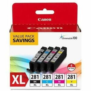 Canon CLI-281 XL Black, Cyan, Magenta and Yellow 4 Ink Pack Compatible to printer TR8520, TR7520, TS9120 Series,TS8120 Series, TS6120 Series, TS9521C, TS9520, TS8220 Series, TS6220 Series