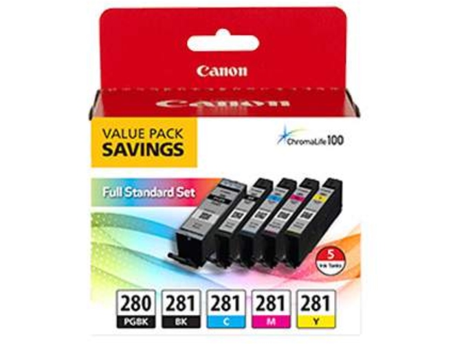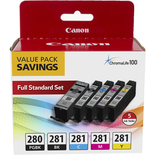 - This value pack includes PGI-280 Pigment Black ink for your text documents, and a set of CLI-281dye-based inks for printing great looking photos and images.