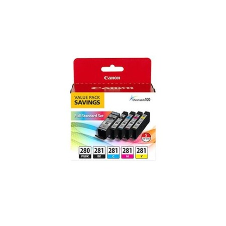 Canon PGI-280 / CLI-281 5 Color Ink Pack, Compatible to TS8120,TS6120,TR8520,TR7520, and TS9120 Wireless Printers, Multi, PGI-280 Full Standard Set