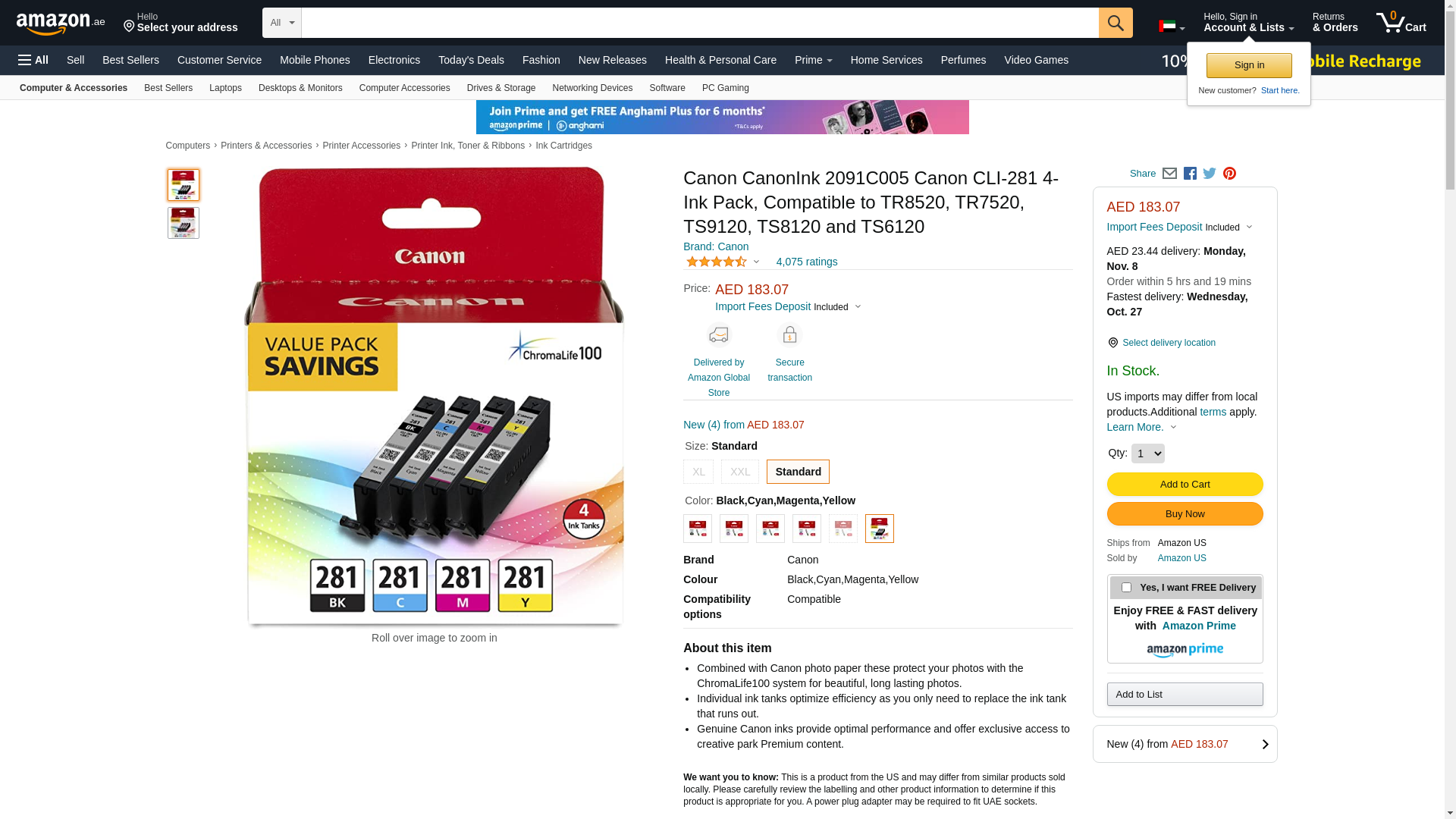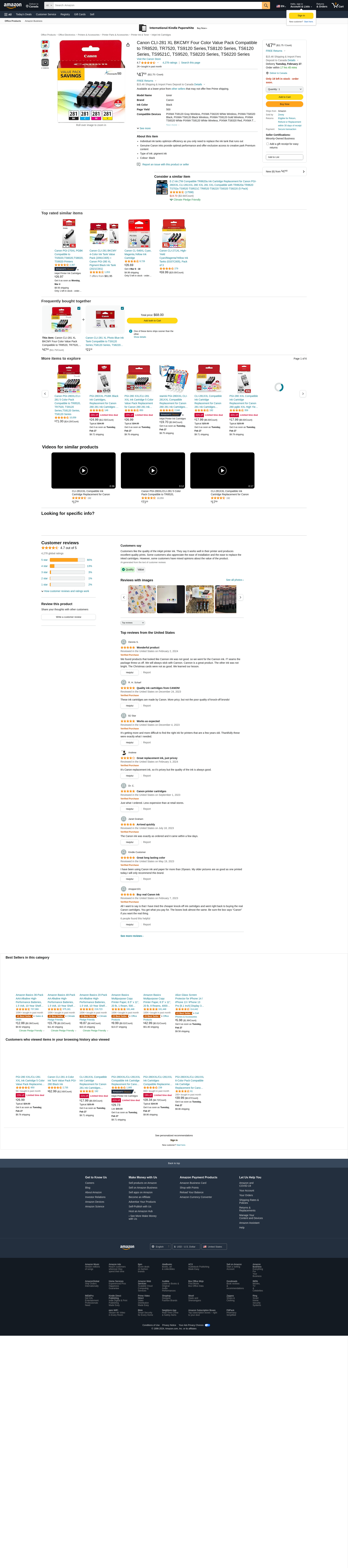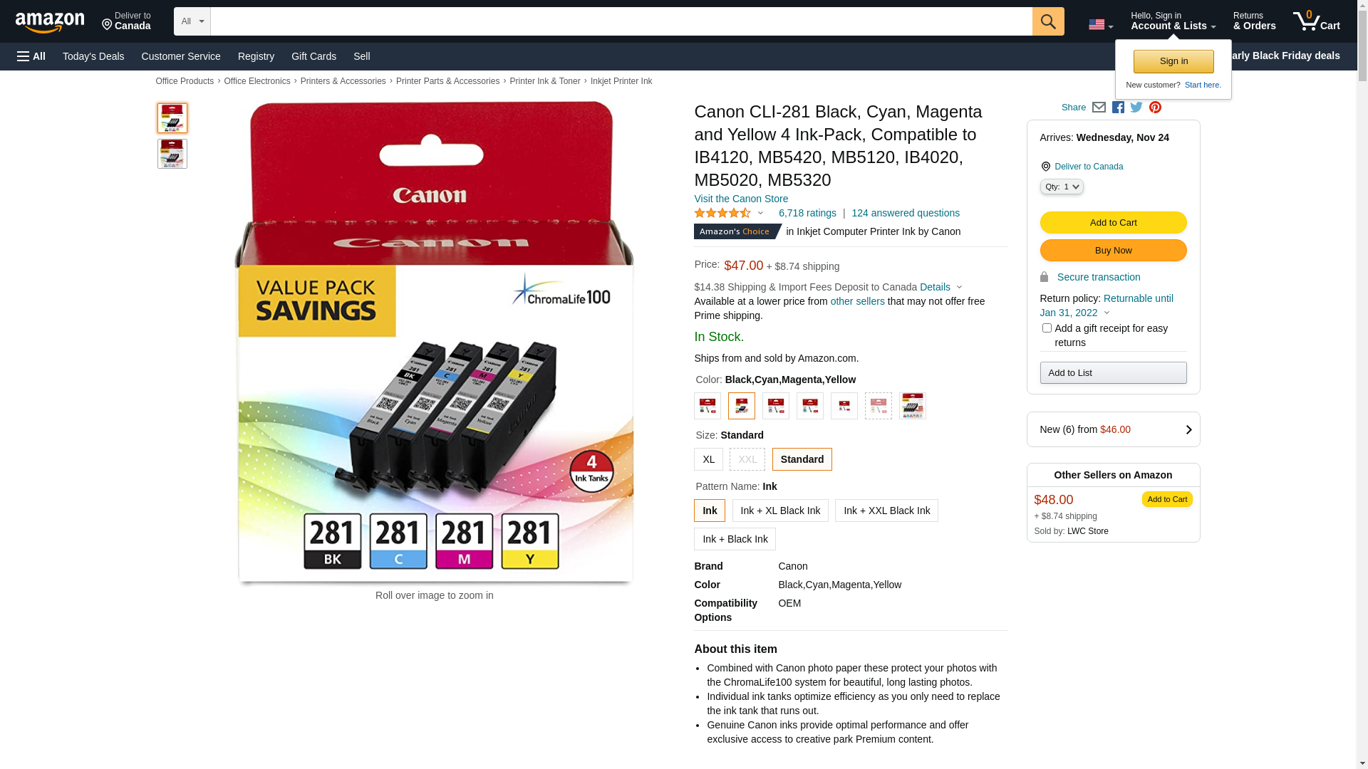 Canon CLI-281 XL BKCMY Four Color Value Pack Compatible to TR8520, TR7520, TS9120 Series,TS8120 Series, TS6120 Series, TS9521C, TS9520, TS8220 Series, TS6220 Series